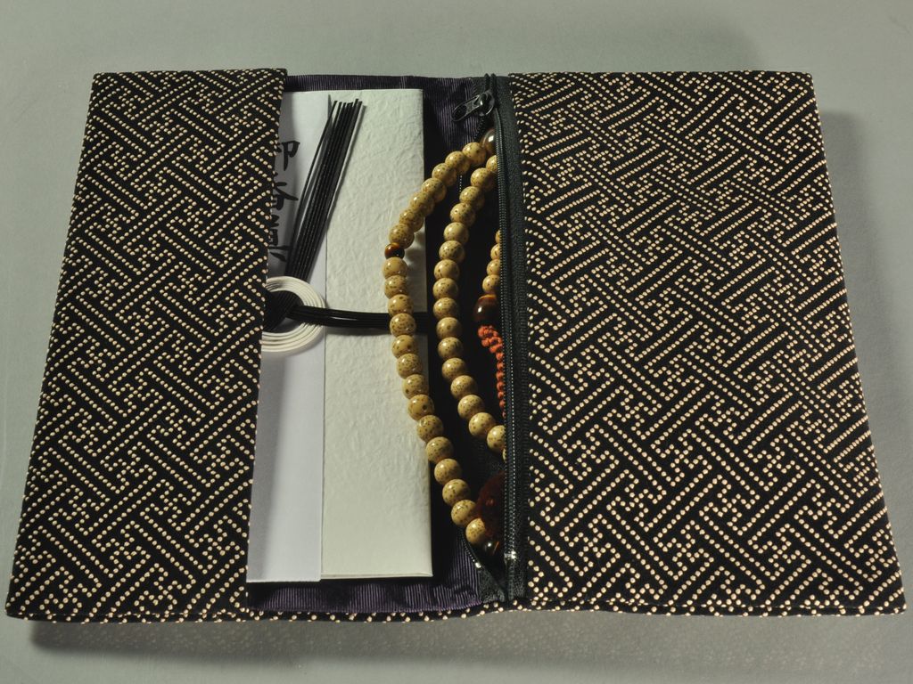 印伝調の金封入れ付きの日本製念珠入れです。金封入れとしては、慶弔共に使えます。