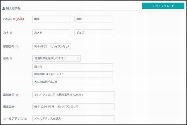 当店で初めてお買いものされる場合や、会員登録をされていない場合は、お客様のお名前やお届け先住所、電話番号などの情報を入力してください。