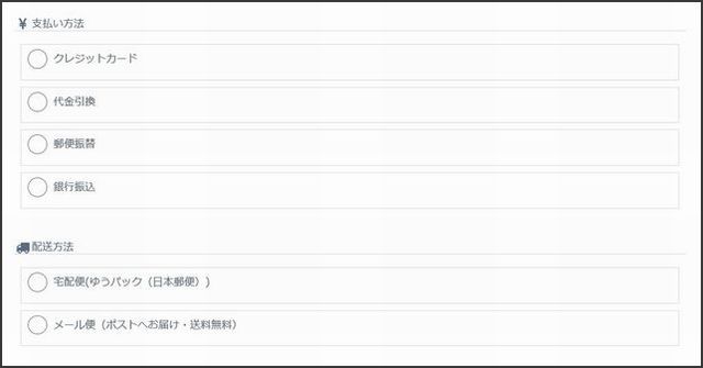 代金引換、銀行振込(先払い)の2通りです。クレジットカード払いはご利用いただけません。
