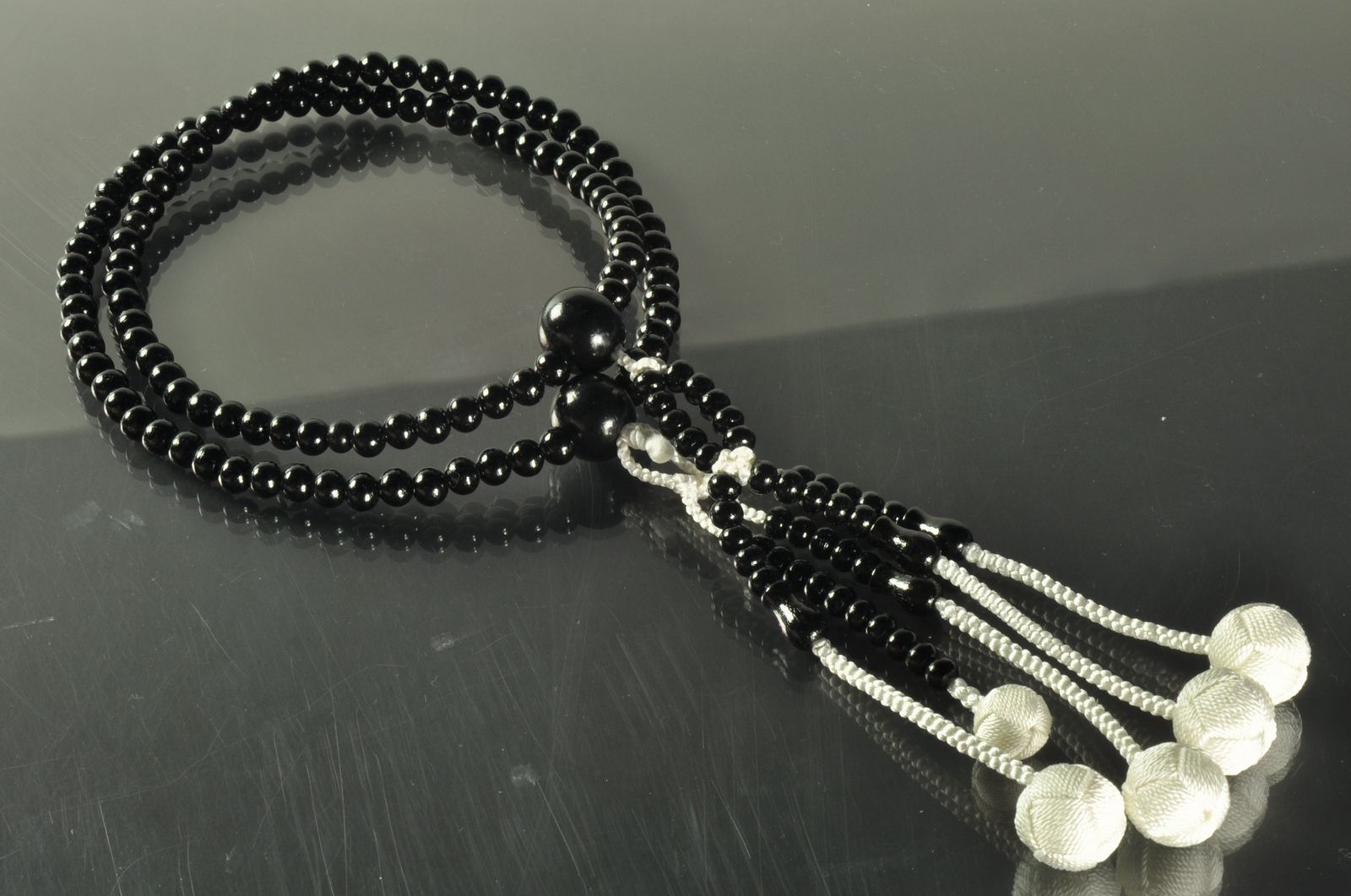 数珠の定番素材である黒檀(照り加工)のみで組んだ