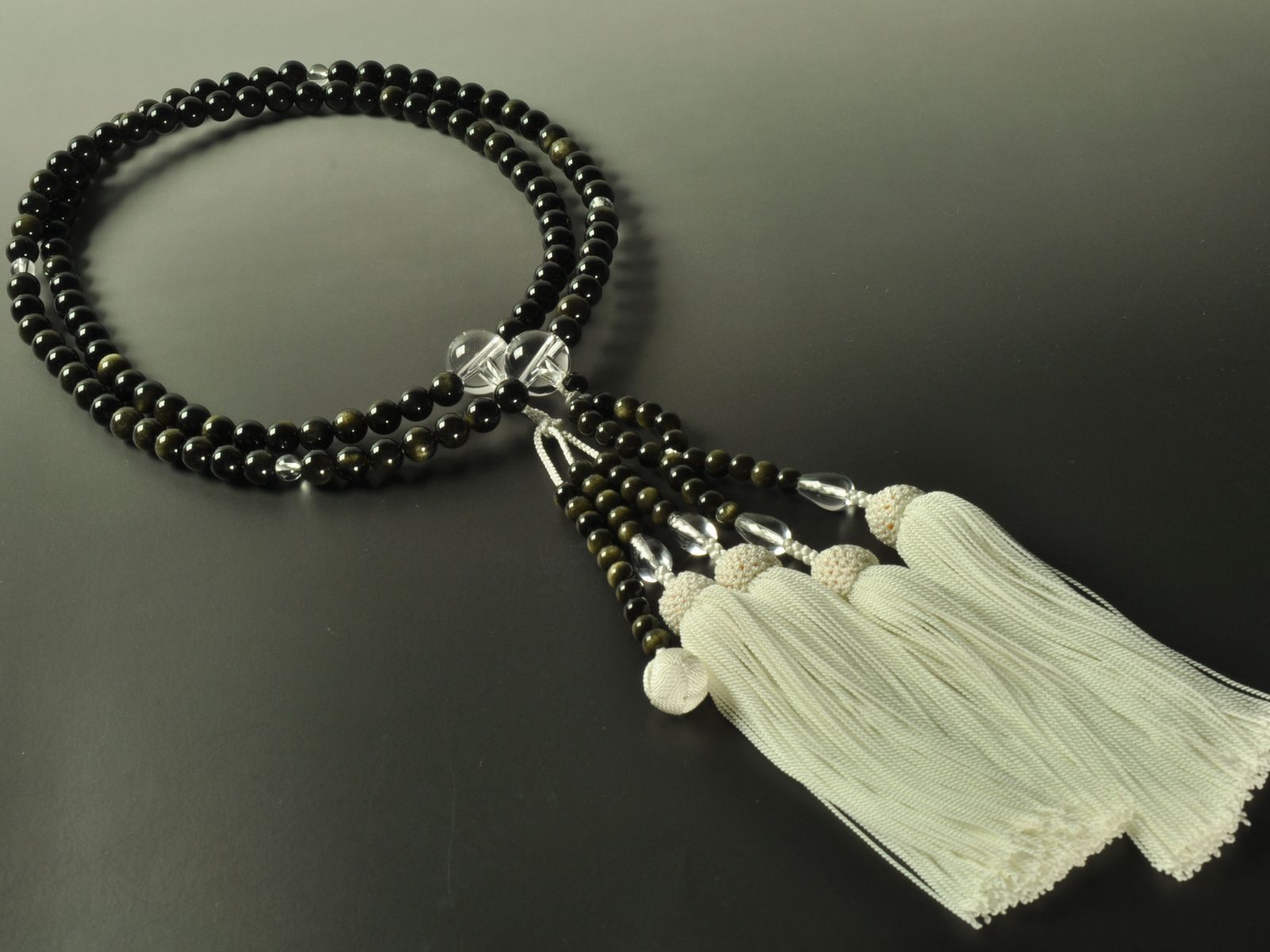 宗派用の念珠の素材としては珍しい金耀石を大玉に入れることで、センスが良く高級感のある印象に仕上がっています。
