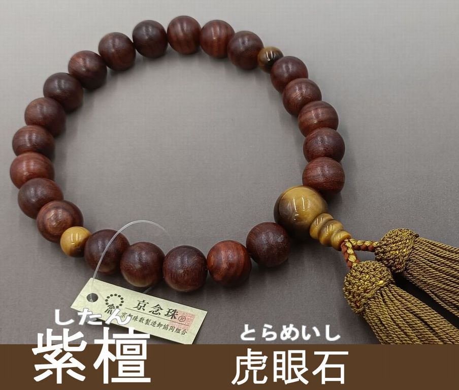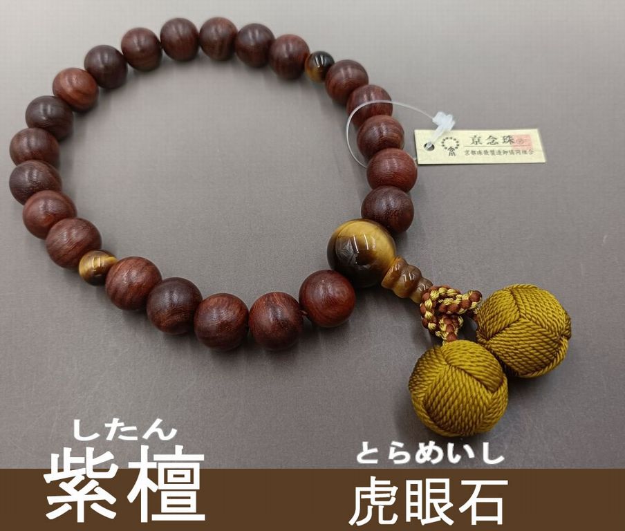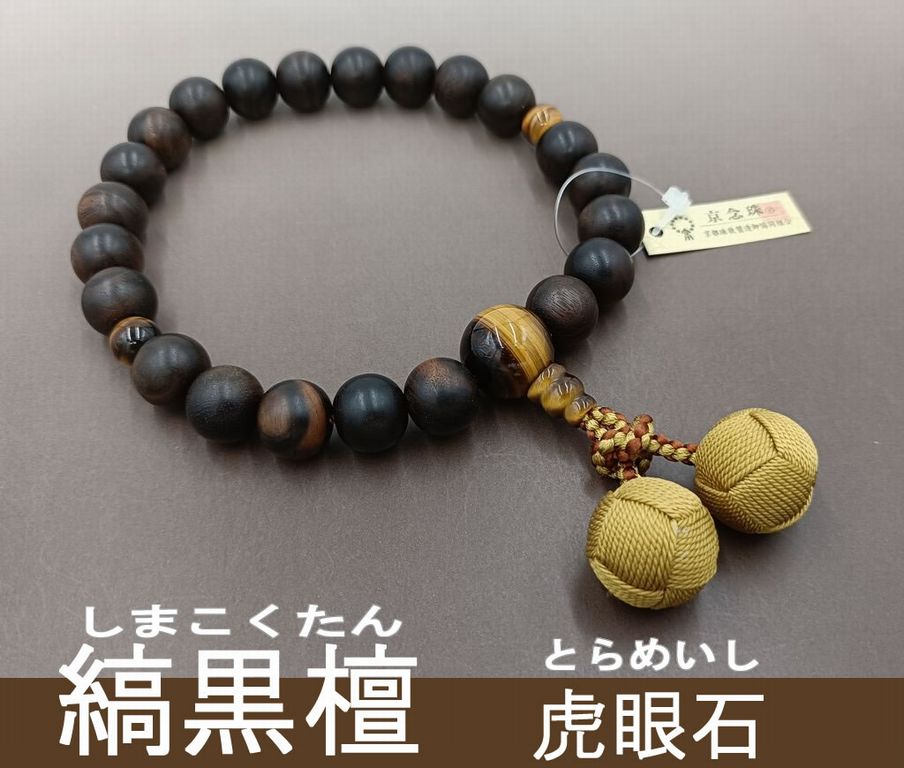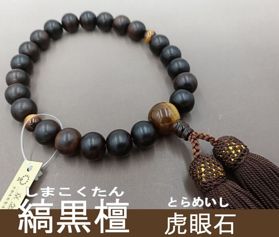 桜 黒檀調(22玉) 虎眼石 正絹頭付き房(浜梨色) 男性用略式数珠