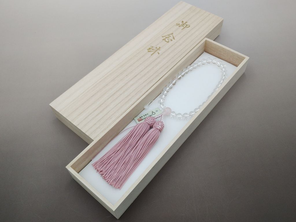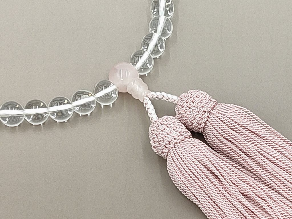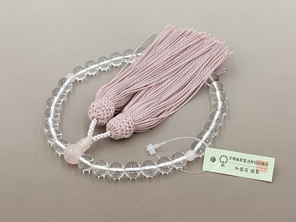 水晶(8mm)ローズクォーツ 正絹頭付き房(灰桜) 女性用略式数珠