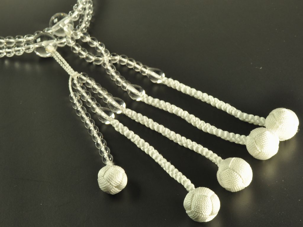 数珠の紐は、簡単に切れるようになっておりませんが、大切にお使いいただけますように、お願いします。詳しくは、 数珠・念珠とはのページへ