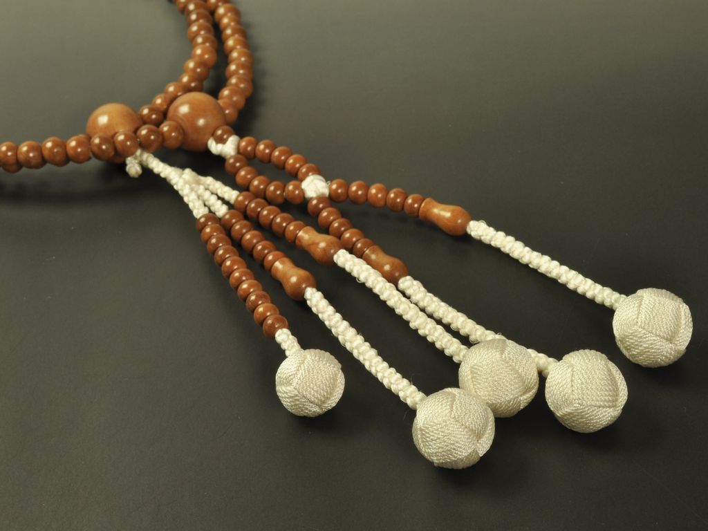 数珠の紐は、簡単に切れるようになっておりませんが、大切にお使いいただけますように、お願いします。詳しくは、 数珠・念珠とはのページへ