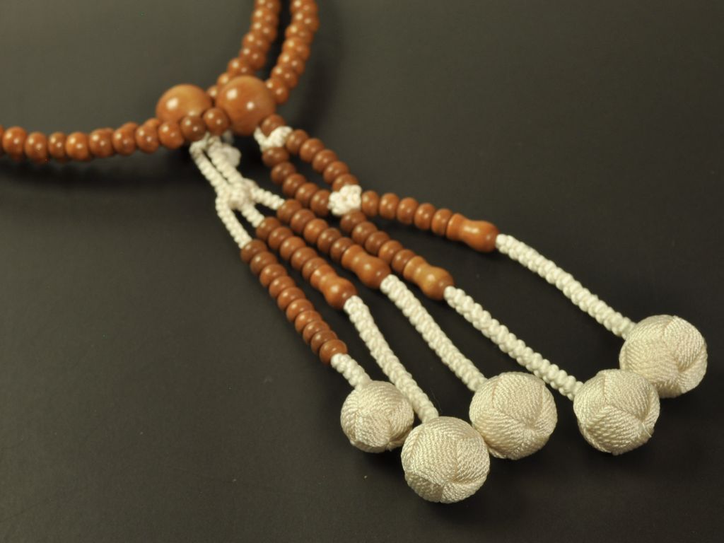 数珠の紐は、簡単に切れるようになっておりませんが、大切にお使いいただけますように、お願いします。詳しくは、 数珠・念珠とはのページへ