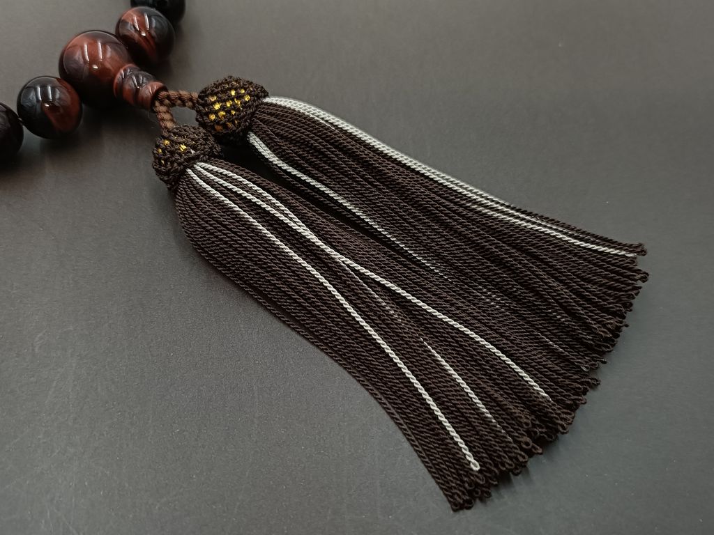 赤虎眼石(22玉) 正絹頭付き房(焦茶/ベージュ) 男性用略式数珠