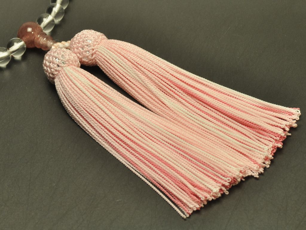 本水晶(7mm) ストロベリークォーツ 正絹頭付三色房(ピンク系) 女性用略式数珠
