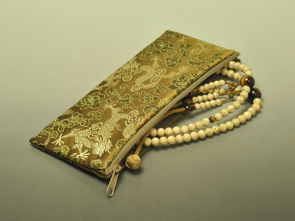 宗派本式数珠に対応したペンケース型の念珠入れです。古代中国から伝来した文様を現代感覚で織り上げました。