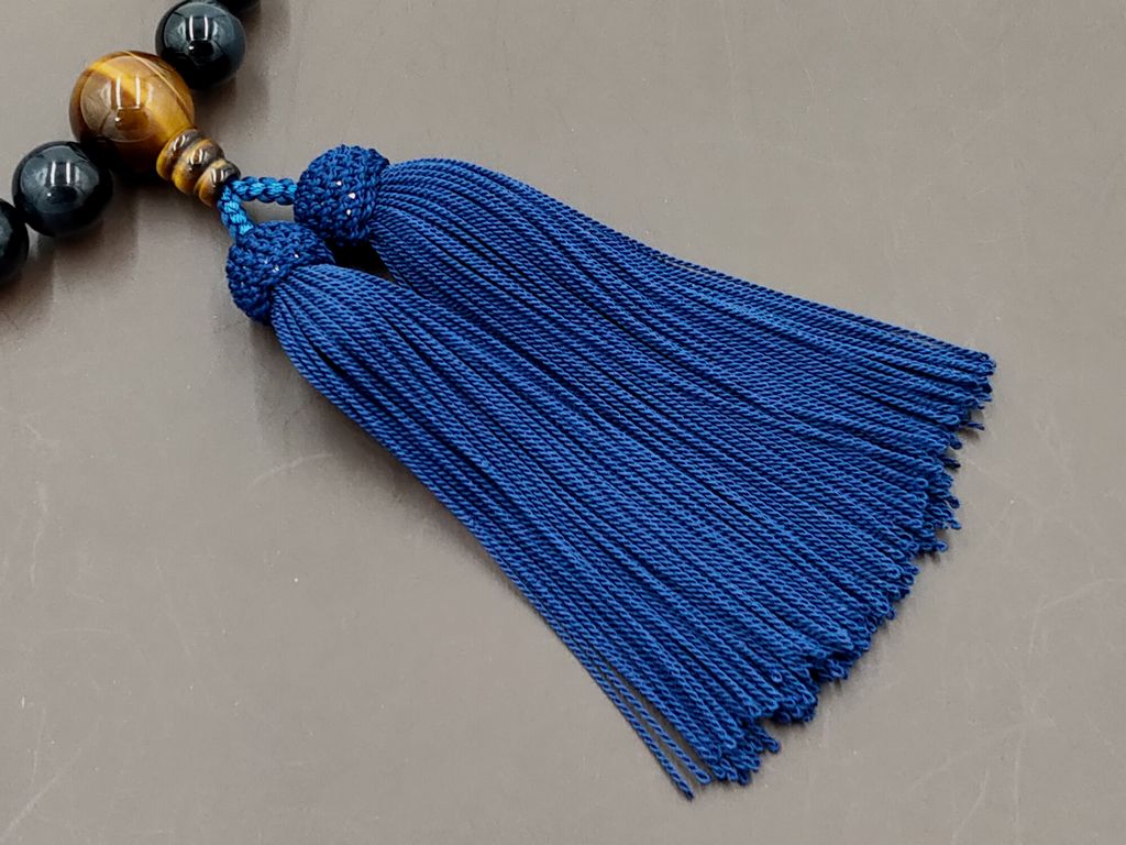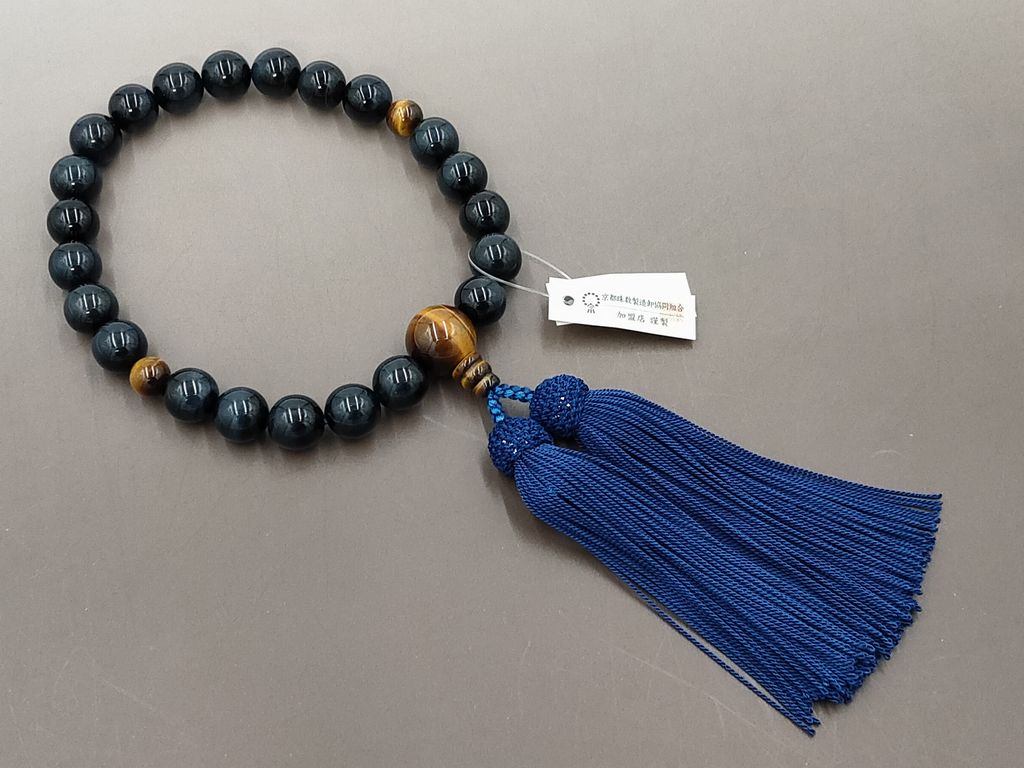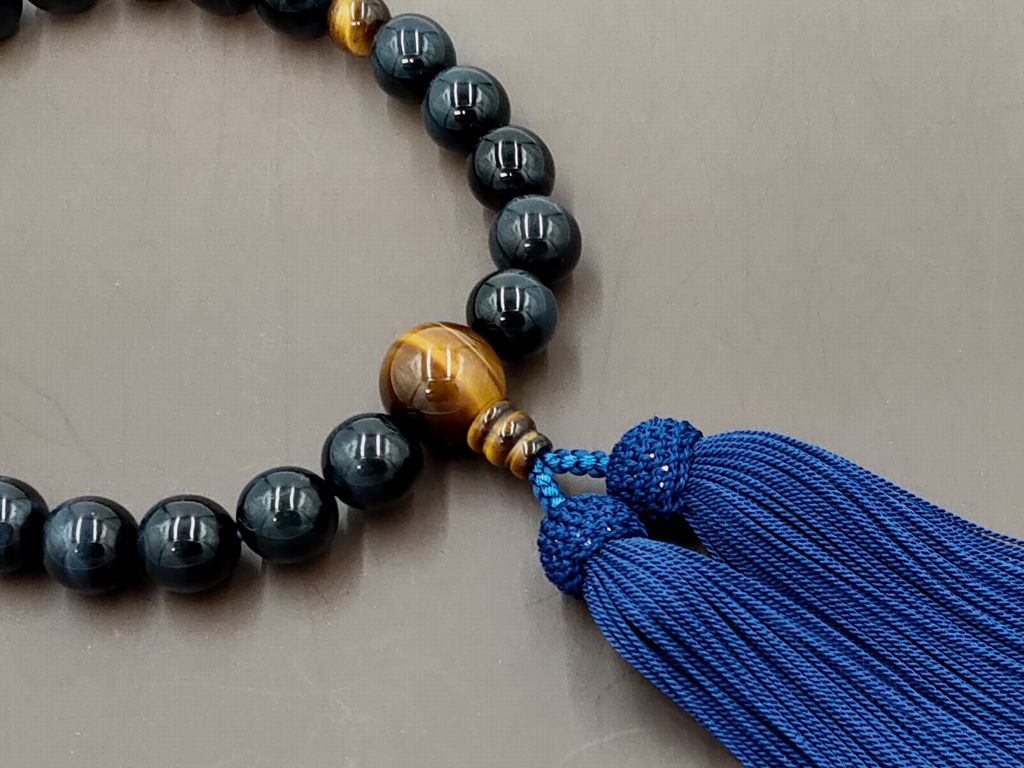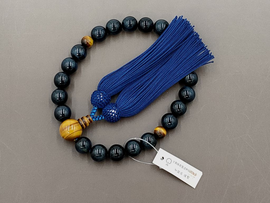 青虎眼石(22玉) 虎眼石 正絹頭付き房(鉄紺) 男性用略式数珠