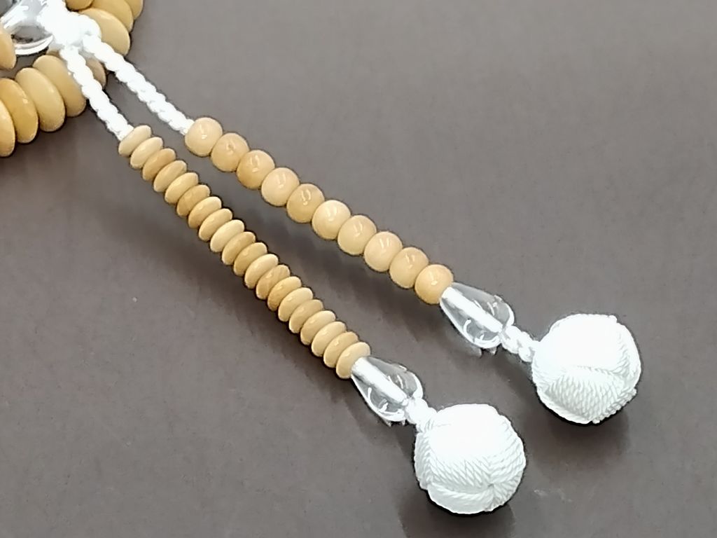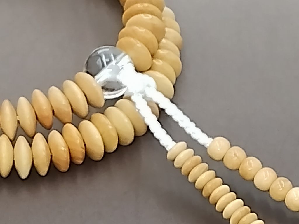 数珠の紐は、簡単に切れるようになっておりませんが、大切にお使いいただけますように、お願いします。詳しくは、 数珠・念珠とはのページへ