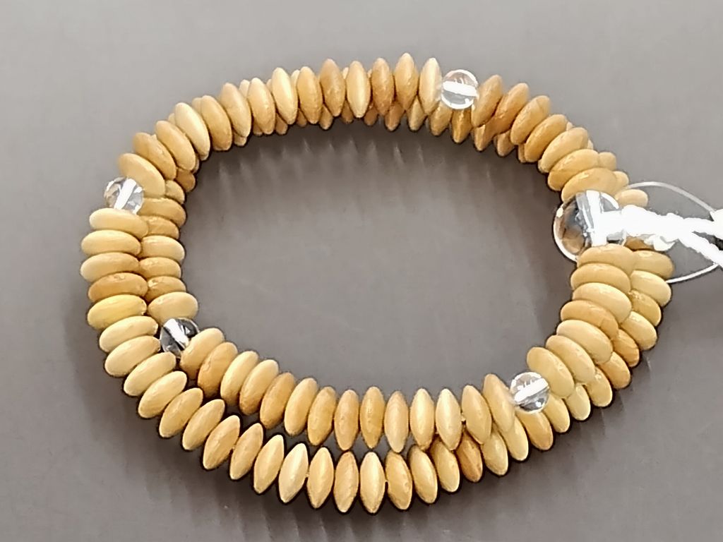 ツゲと読みます。関東以西に自生する木で、重厚で成長に時間がかかります。数珠の玉としても適しており、古くから将棋の駒やソロバンの玉、印鑑にも用いられてきました。色合いも明るめで天然石の玉とも相性が良いです。