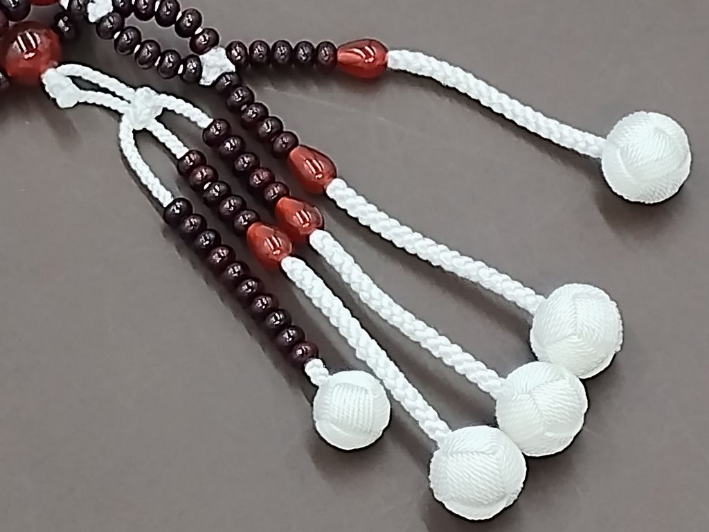 数珠の紐は、簡単に切れるようになっておりませんが、大切にお使いいただけますように、お願いします。詳しくは、 数珠・念珠とはのページへ
