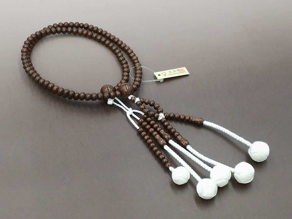 鉄刀木 梵天カガリ房(白色) 日蓮正宗 男性用本式数珠