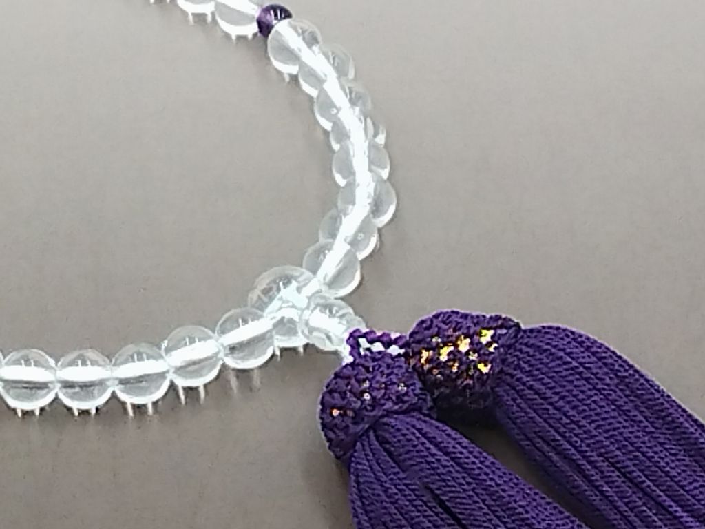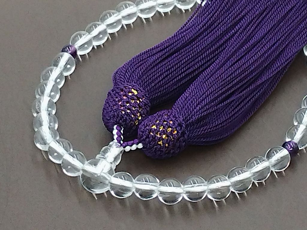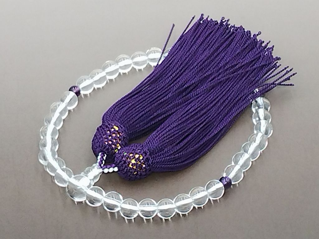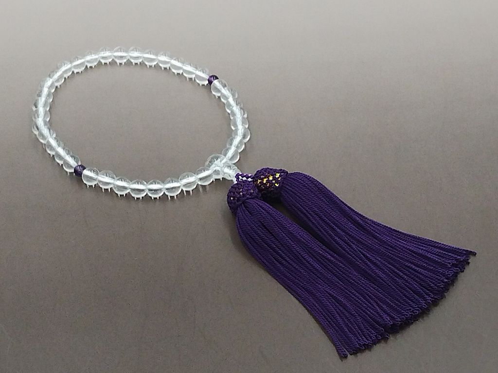 本水晶(7mm)二天紫水晶 正絹頭付き房(紫紺)女性用略式数珠