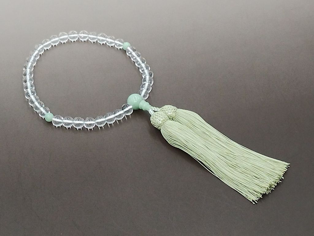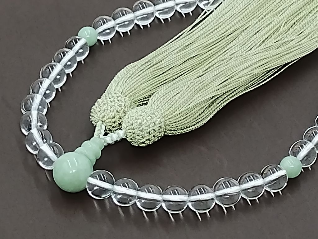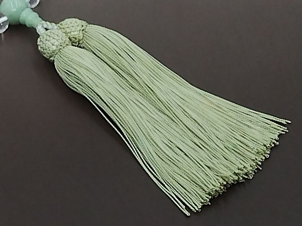 水晶(8mm)本翡翠 正絹頭付き房(青磁) 女性用略式数珠