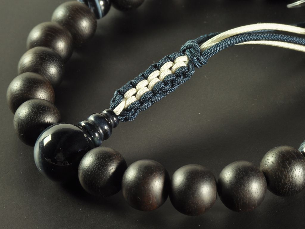 縞黒檀(22玉) 青虎眼石 六本組紐房(濃紺/白) 浄土真宗(門徒) 男性用本式数珠