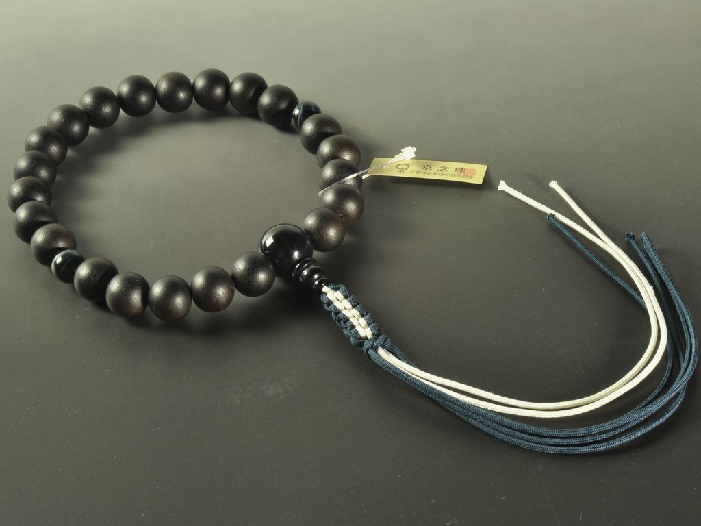 浄土真宗(門徒)男性用のお数珠です。上質な縞黒檀にと人気の青虎眼石を組み合わせたました。房は6本組紐です。男性用の標準的なサイズの数珠です。