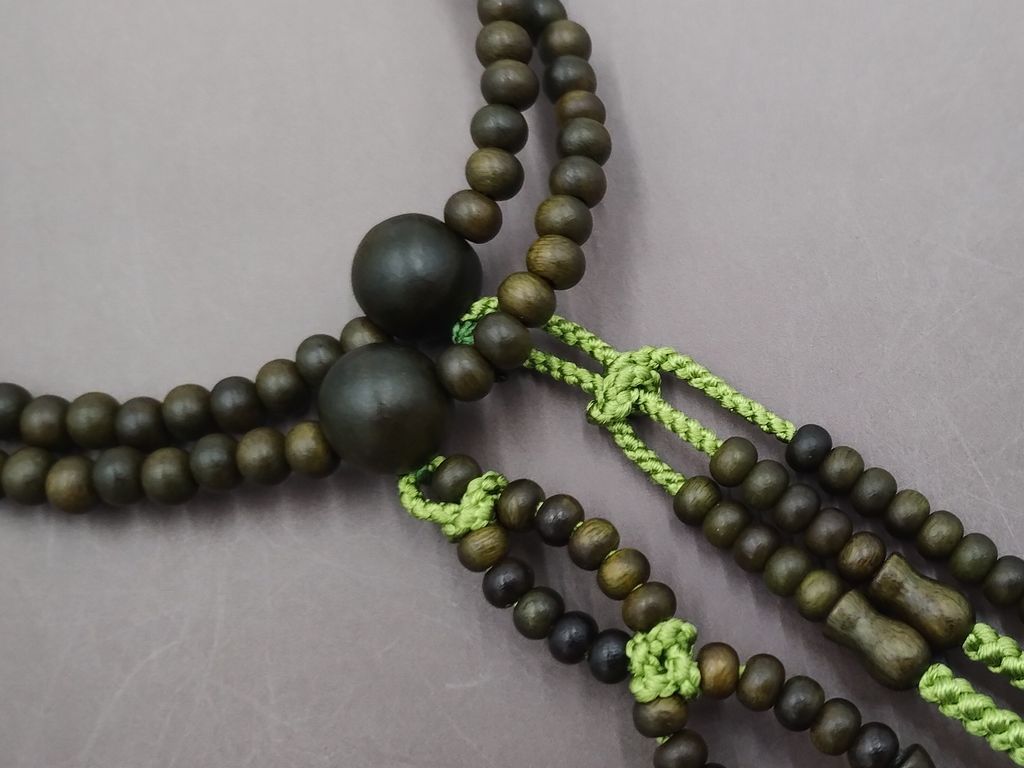 数珠の紐は、簡単に切れるようになっておりませんが、大切にお使いいただけますように、お願いします。詳しくは、 数珠・念珠とはのページへ