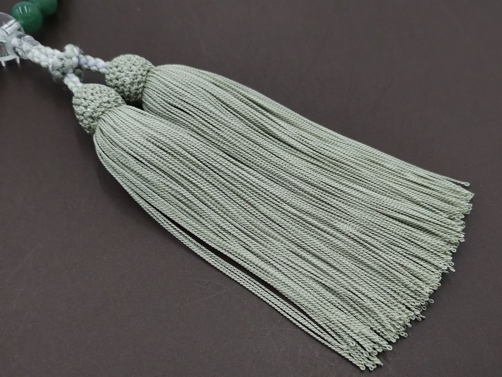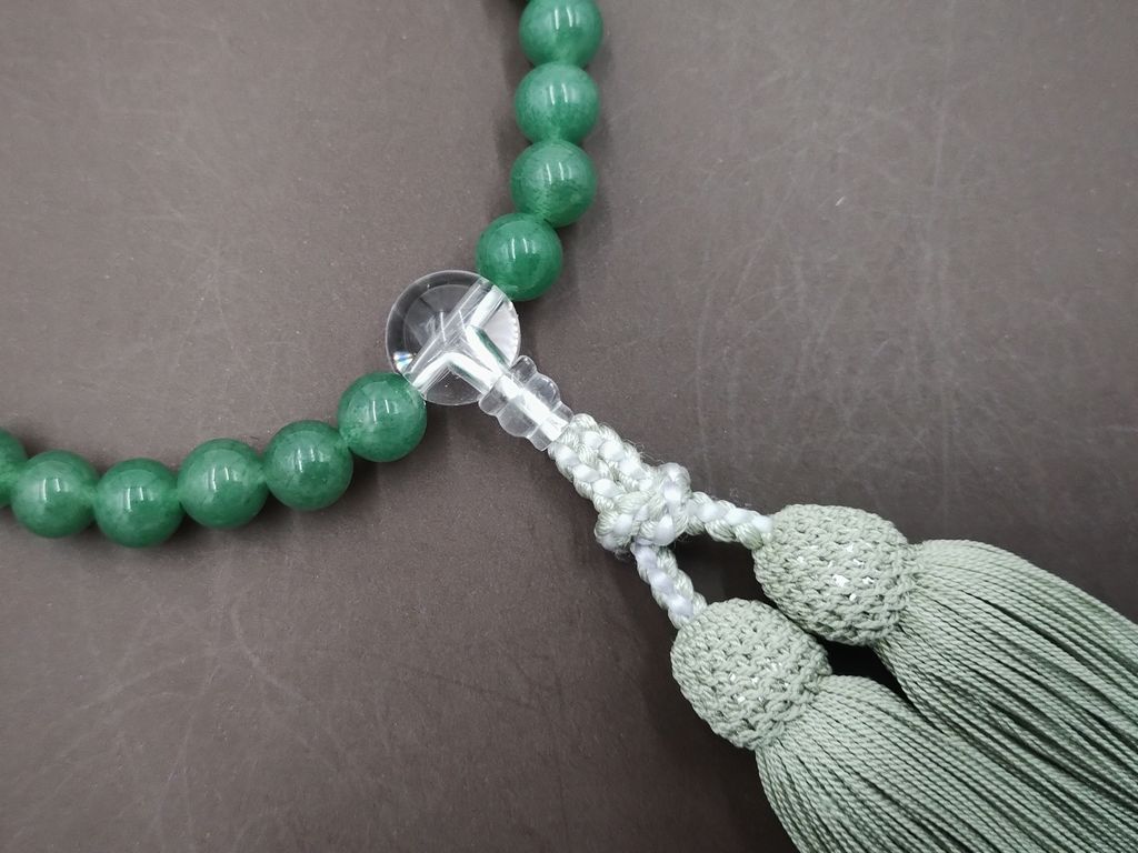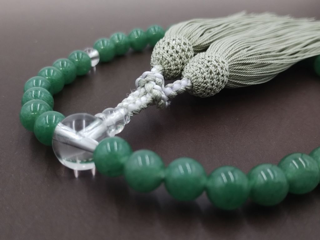 アベンチリン(8mm) 水晶 正絹頭付細房(抹茶) 女性用略式数珠