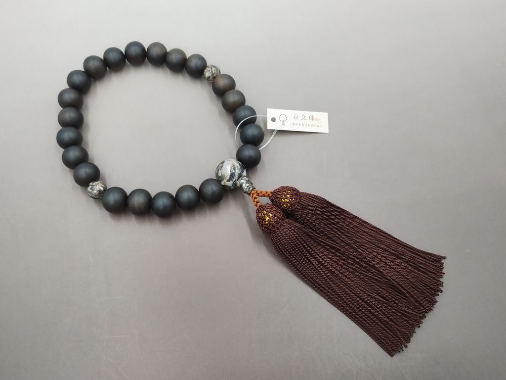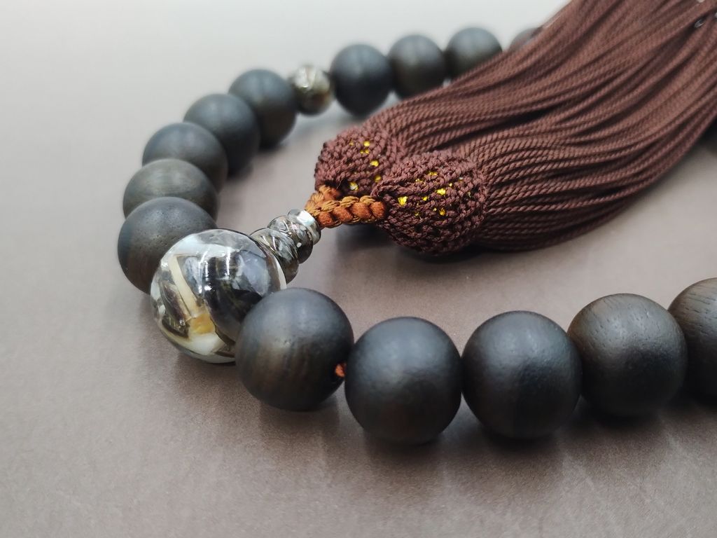 縞黒檀(22玉)ブラックシェル仕立て 正絹頭付き房(桧皮色) 男性用略式数珠