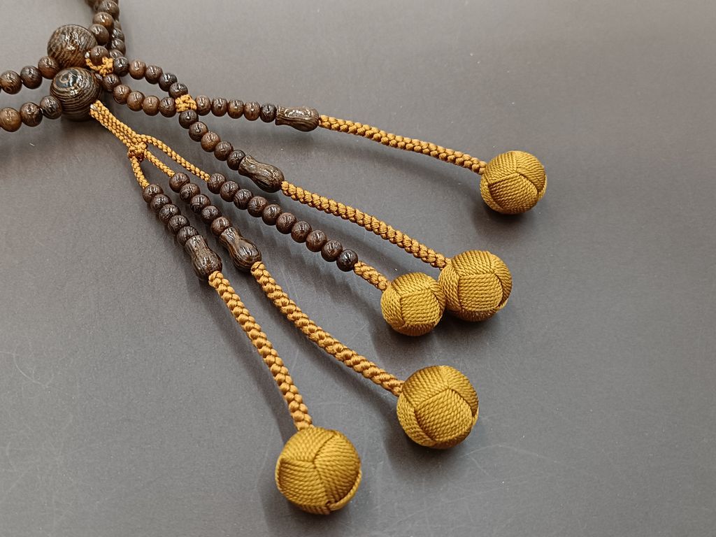 鉄刀木 共仕立て 梵天カガリ房(薄茶) 日蓮宗 男性用本式数珠