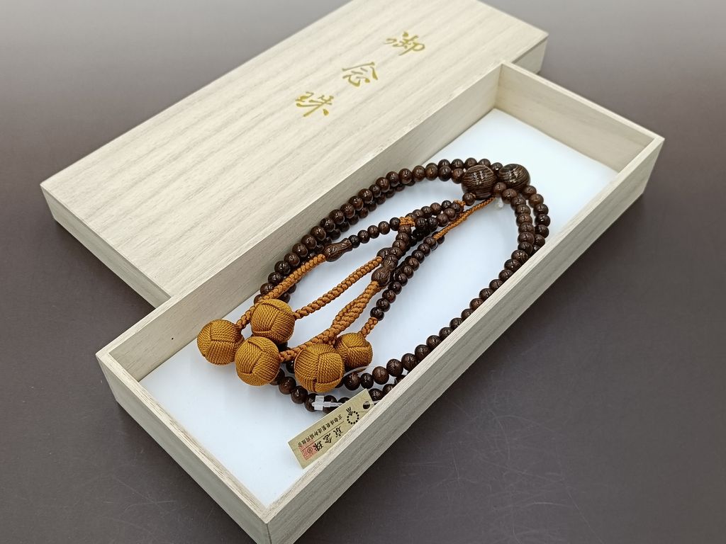 日蓮宗 男性用の本式念珠です。鉄刀木は硬い木で、木目が美しく独特の風合いがあります。