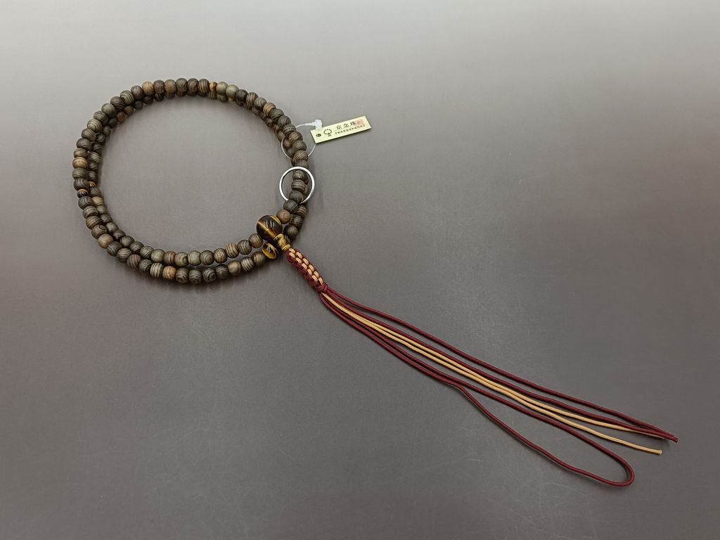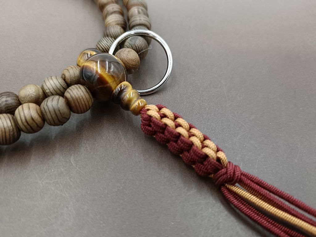神代杉 虎眼石 六本組紐房(濃エンジ/薄茶) 曹洞宗(禅宗) 男性用本式数珠