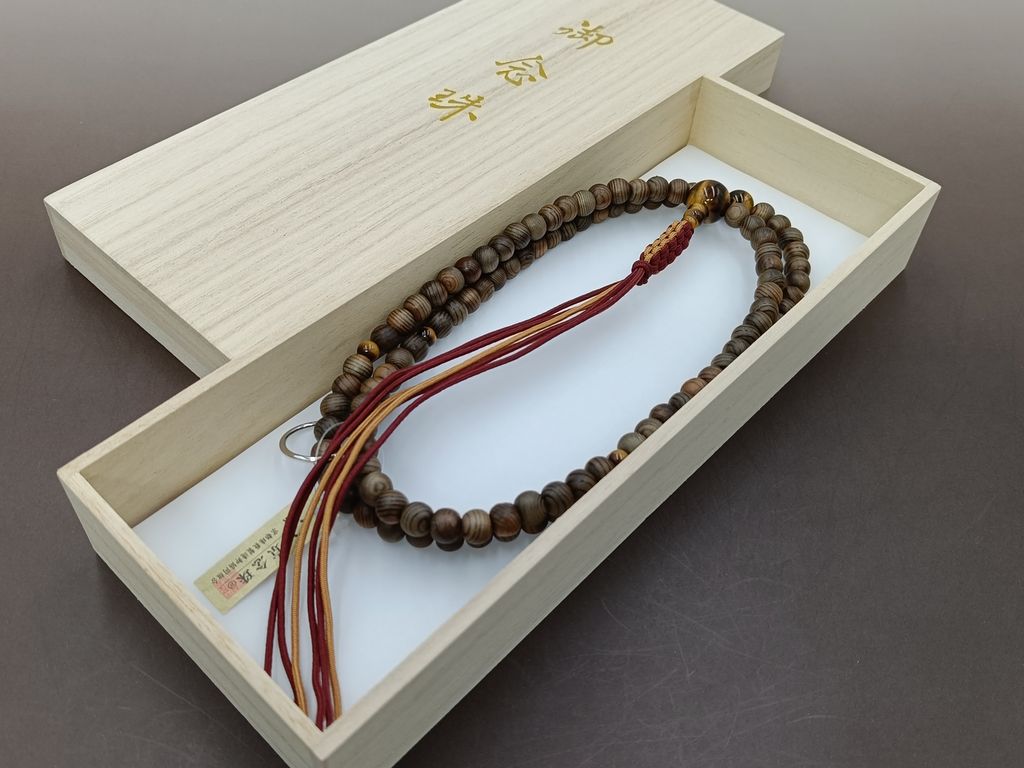 数珠の紐は、簡単に切れるようになっておりませんが、大切にお使いいただけますように、お願いします。詳しくは、 数珠・念珠とはのページへ