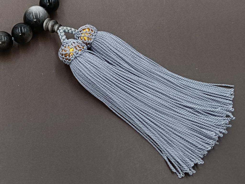 銀黒曜石(22玉) 共仕立て 正絹頭付き房(グレー) 男性用略式数珠