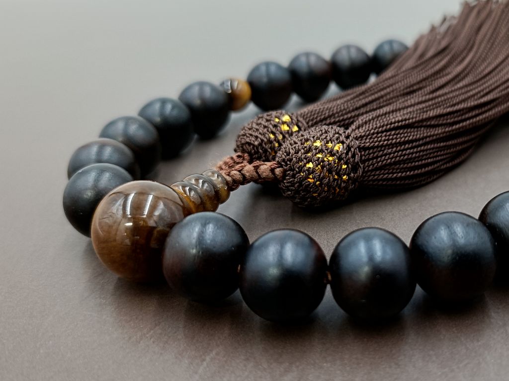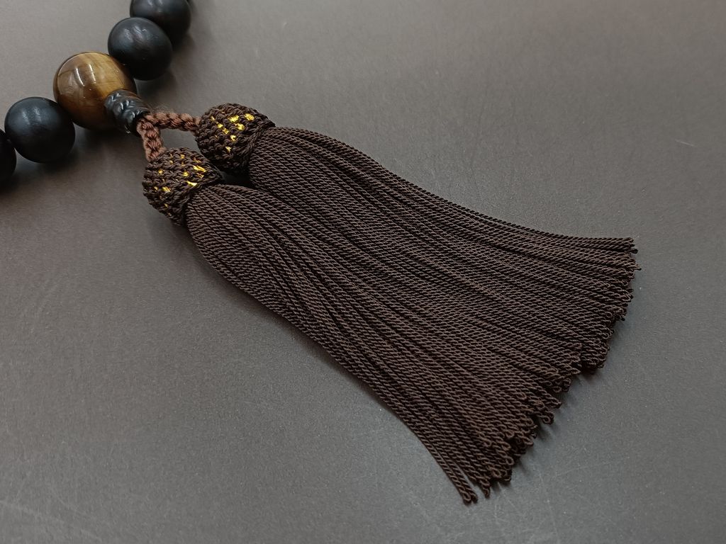 素挽縞黒檀(22玉) 虎眼石 正絹頭付き房(こげ茶) 男性用略式数珠