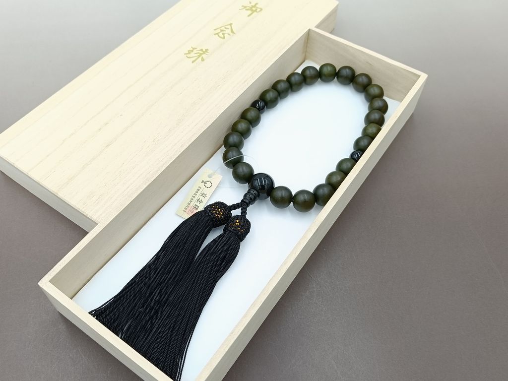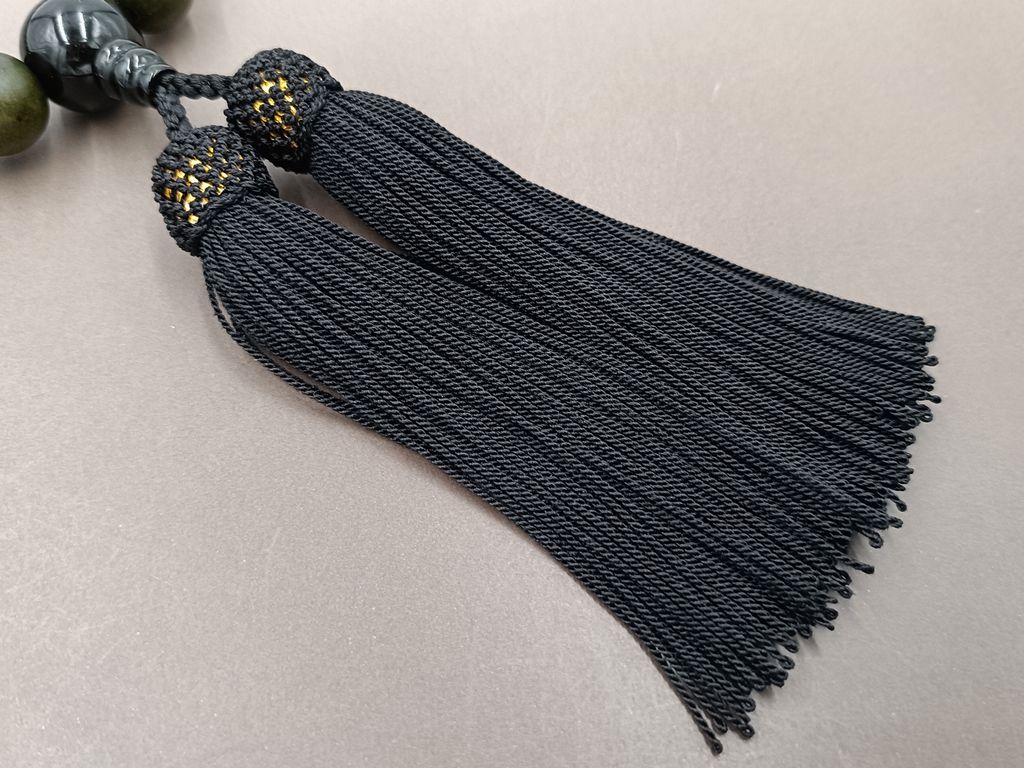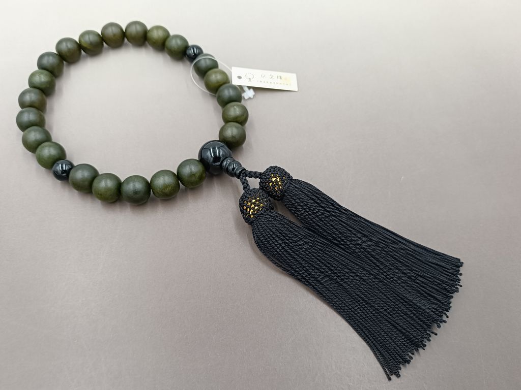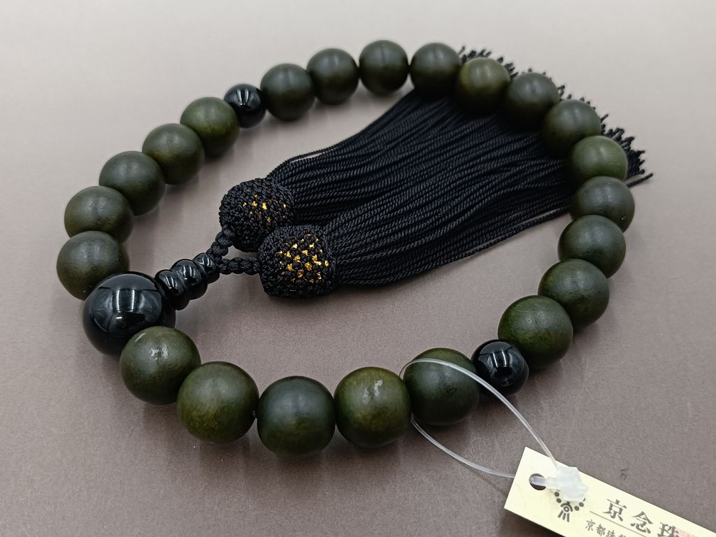 緑檀(22玉) ブラックオニキス 正絹頭付き房(黒色) 男性用略式数珠