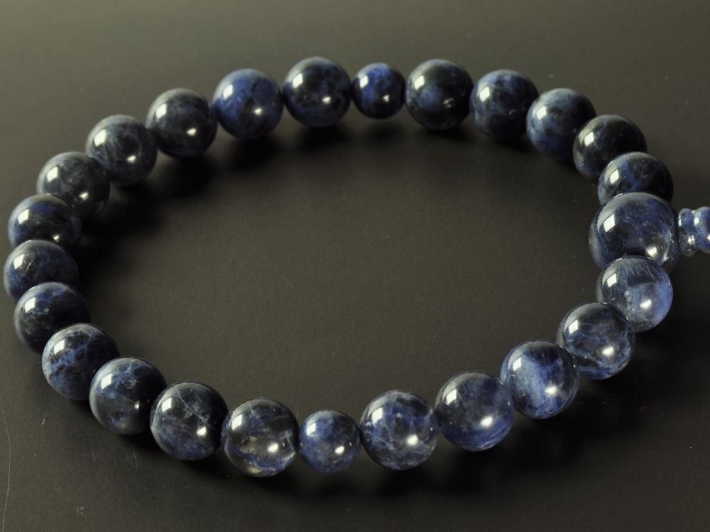 このお数珠は綺麗なブルーの色合いのソーダーライト石を使っています。青がラッキーカラーの方からのご注文が多いです。お値段もかなり抑えておりますので、お得な選択です。