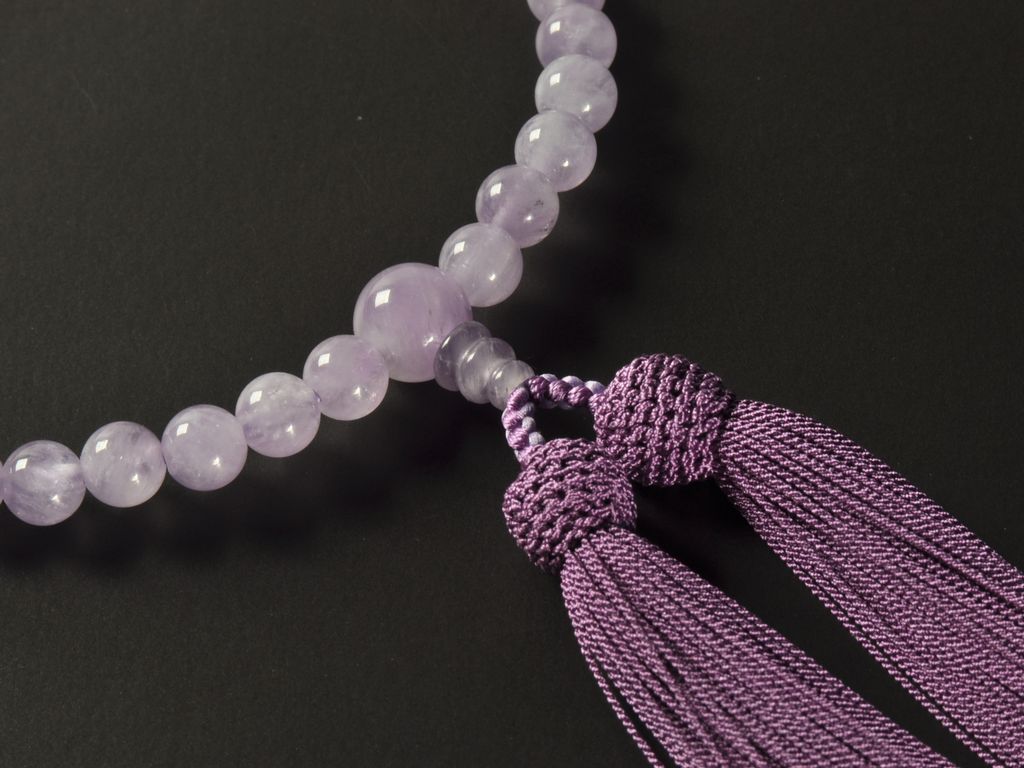 数珠の紐は、簡単に切れるようになっておりませんが、大切にお使いいただけますように、お願いします。詳しくは、 数珠・念珠とはのページへ