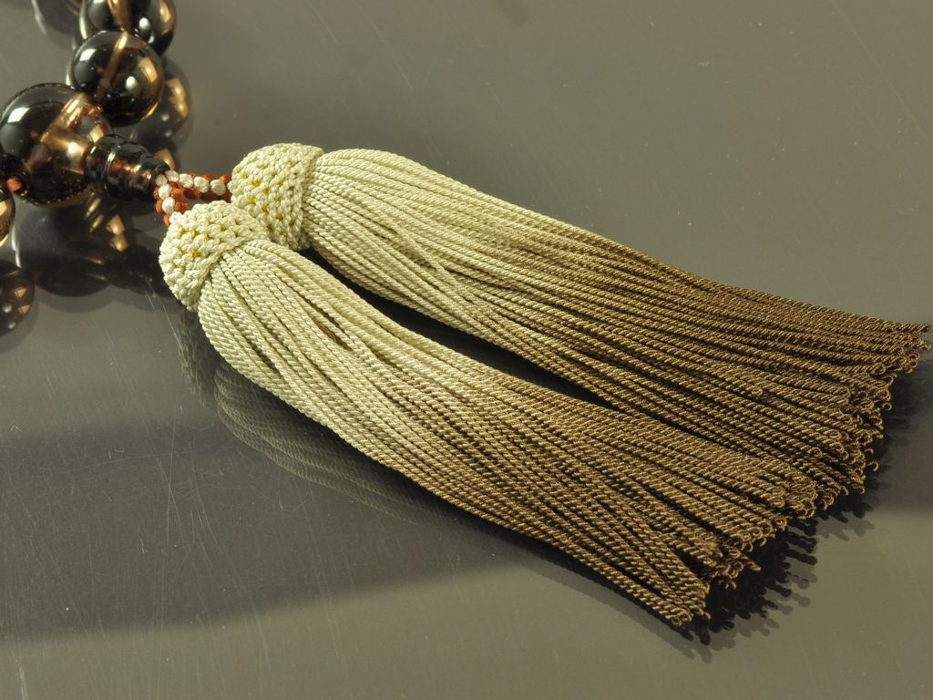 茶水晶(22玉) 正絹頭付き房(京ぼかし染め) 男性用略式数珠