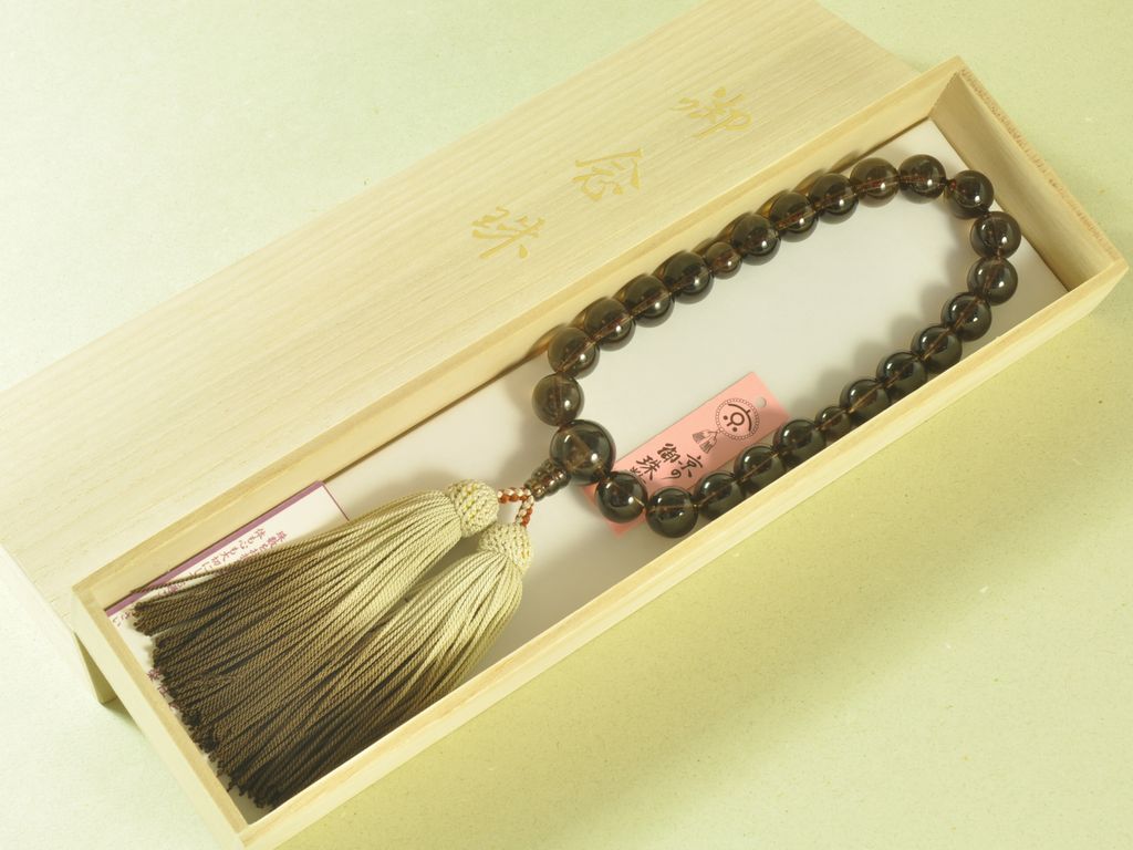 今回はいろいろとありがとうございました。茶水晶のお数珠は、期待以上の品質でした。重厚でかつ、きれいな透明感があります。長く大事に使おうと思います。40代 男性