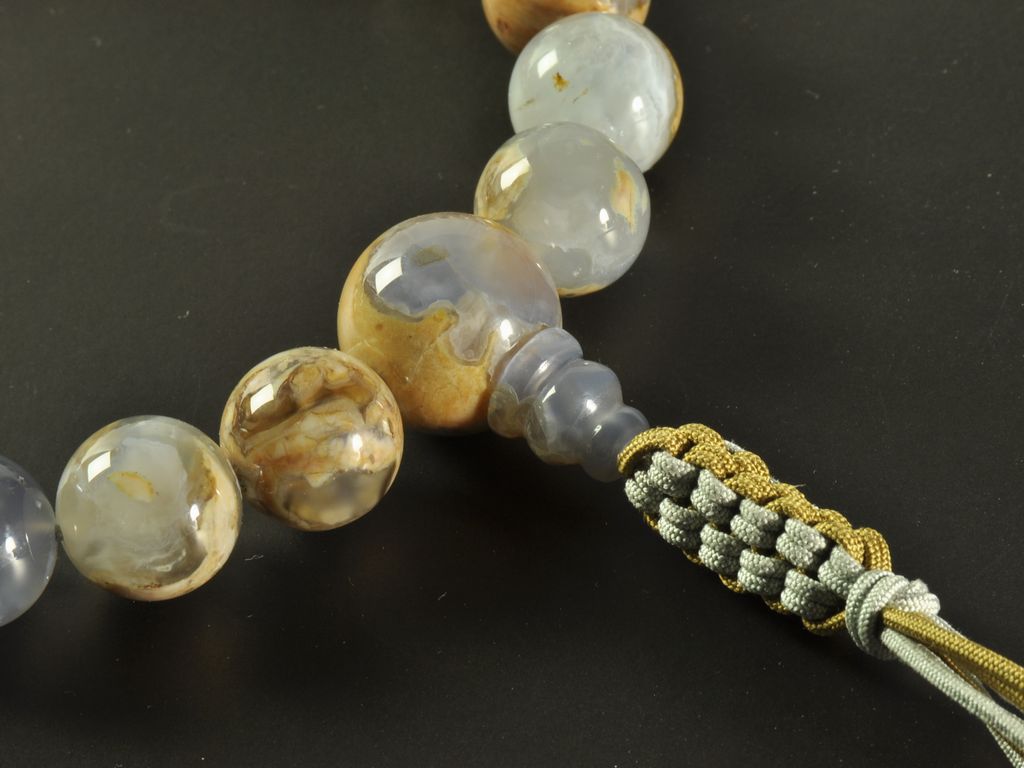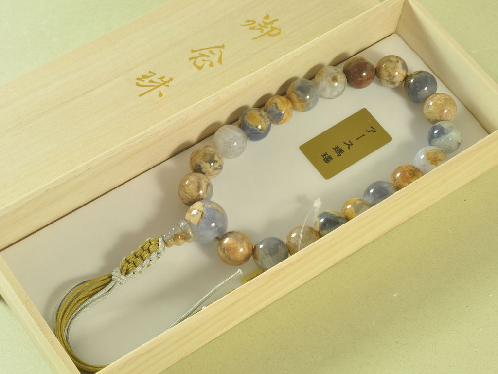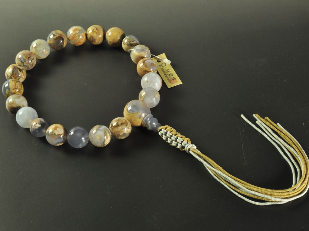 男性用の高級略式数珠です。アース瑪瑙(メノウ)という珍しい石を使っています。