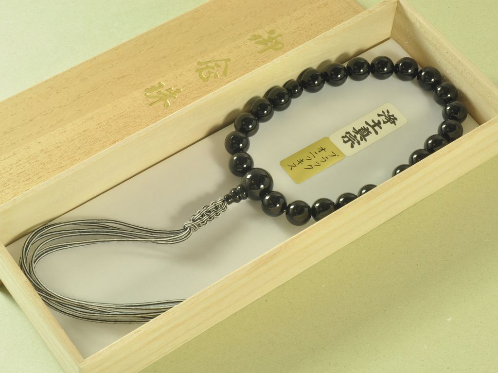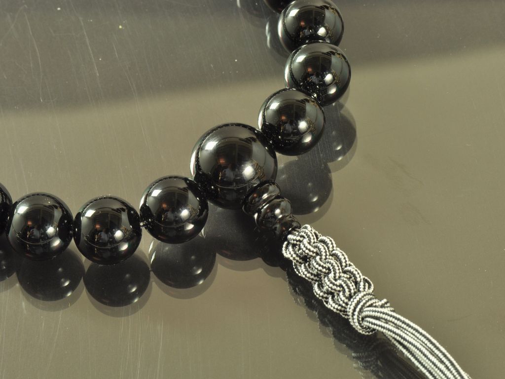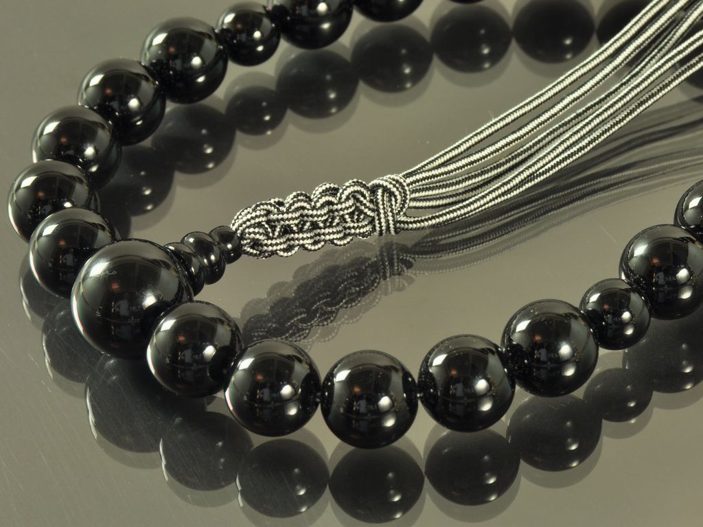 ブラックオニキス(22玉) 六本組紐房(黒 銀鼠ストライプ) 浄土真宗(門徒) 男性用本式数珠
