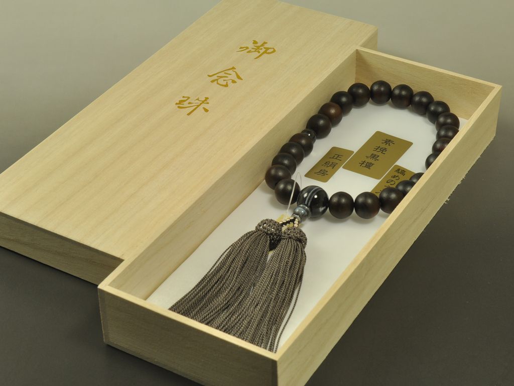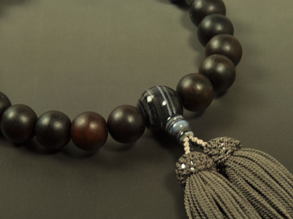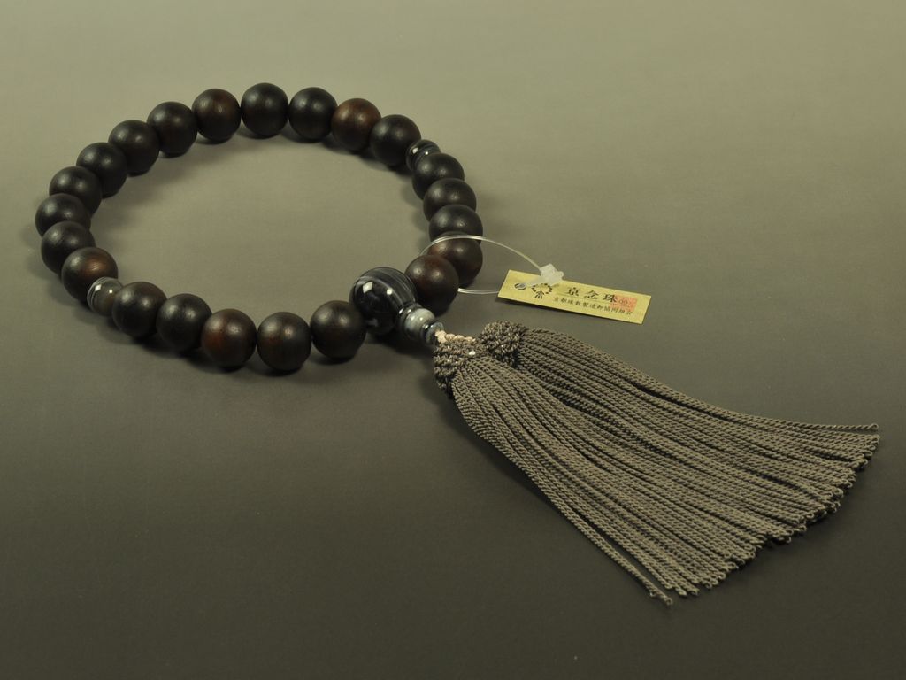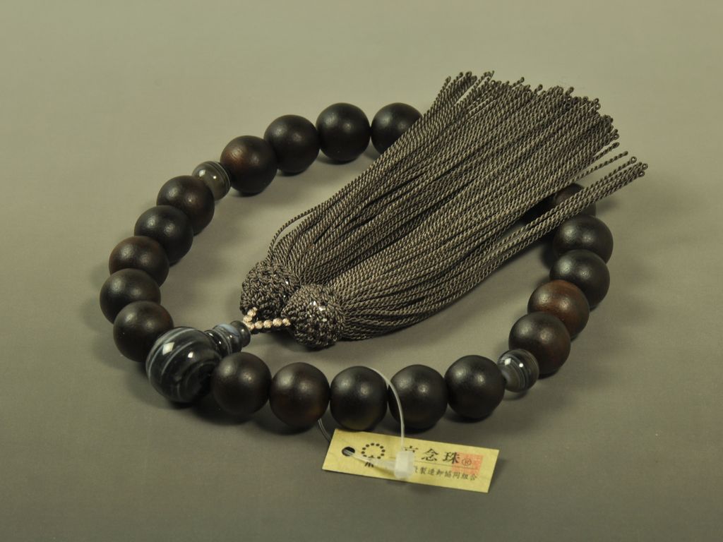 素挽縞黒檀(22玉) 黒縞瑪瑙 正絹頭付き房(鼠茶色) 男性用略式数珠