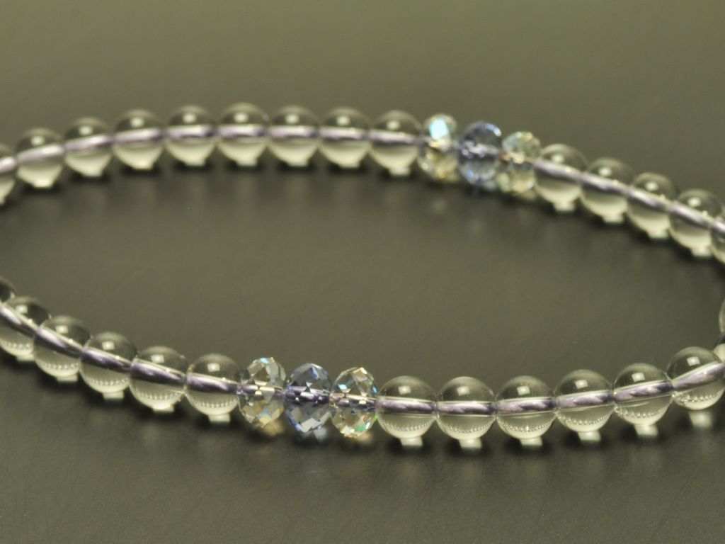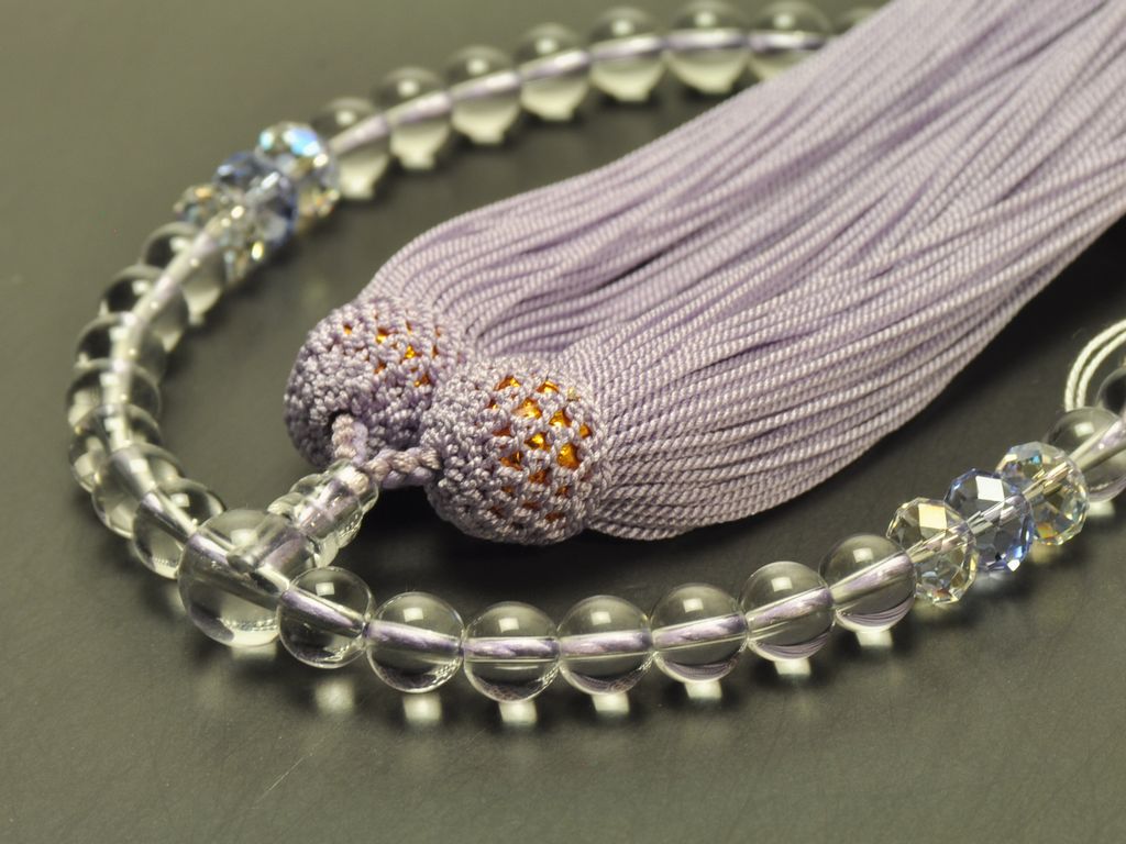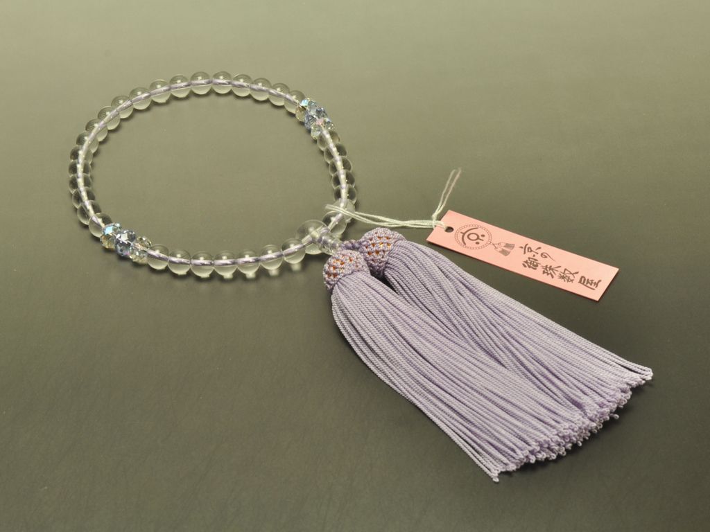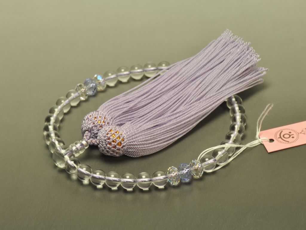 水晶(7mm) 天玉・クリスタルビーズ(ムーンライト・ラベンダー) 正絹頭付き房(薄藤) 女性用略式数珠