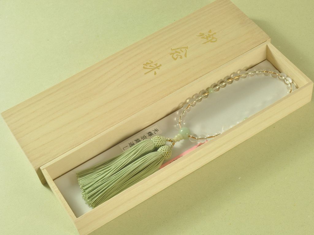 数珠の紐は、簡単に切れるようになっておりませんが、大切にお使いいただけますように、お願いします。詳しくは、 数珠・念珠とはのページへ