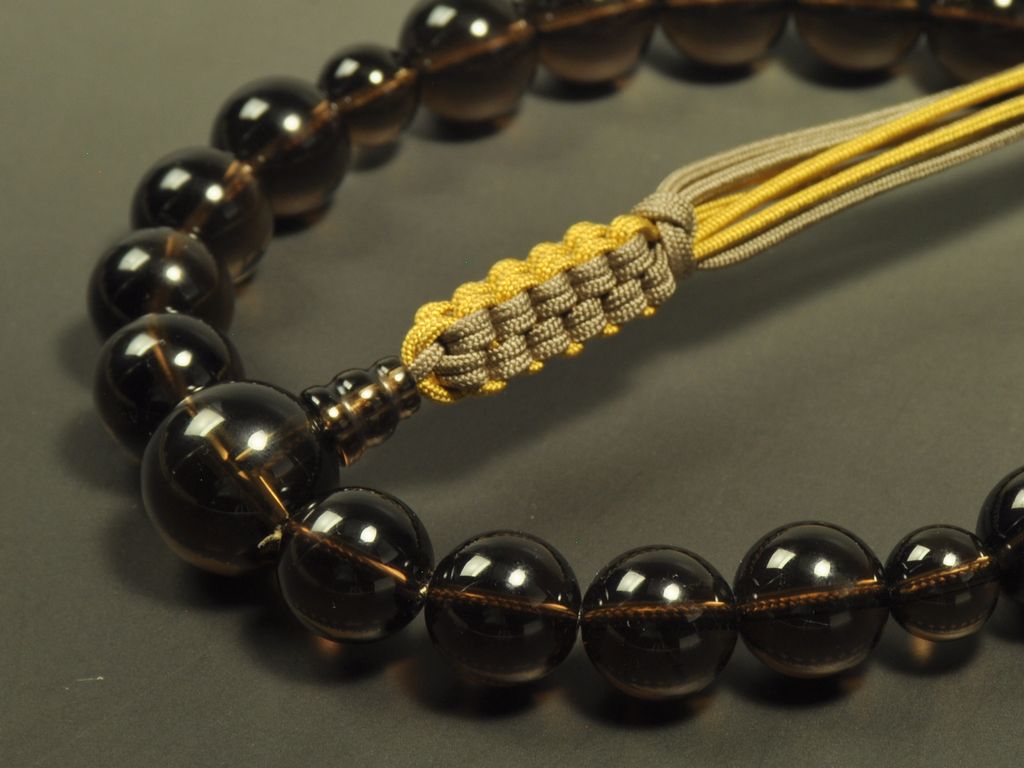 水晶の一種で、英名でスモーキークォーツと呼ばれています。色の濃淡は個体差がありますが、上品で落ち着いた雰囲気のある天然石で、数珠においては男女を問わず好まれて使われます。力の強いパワーストーンとしても有名です。