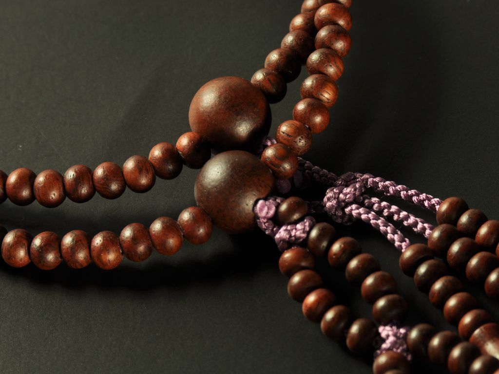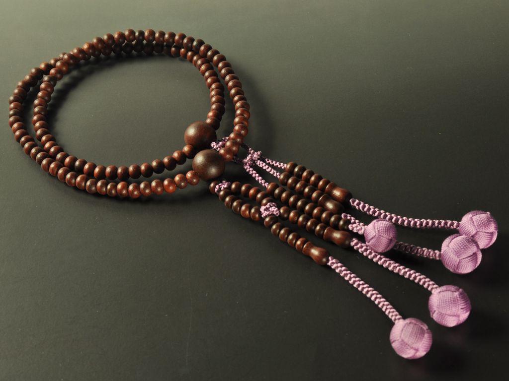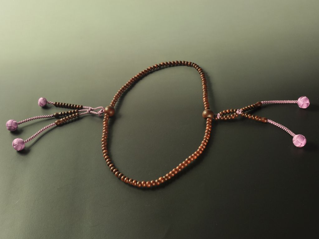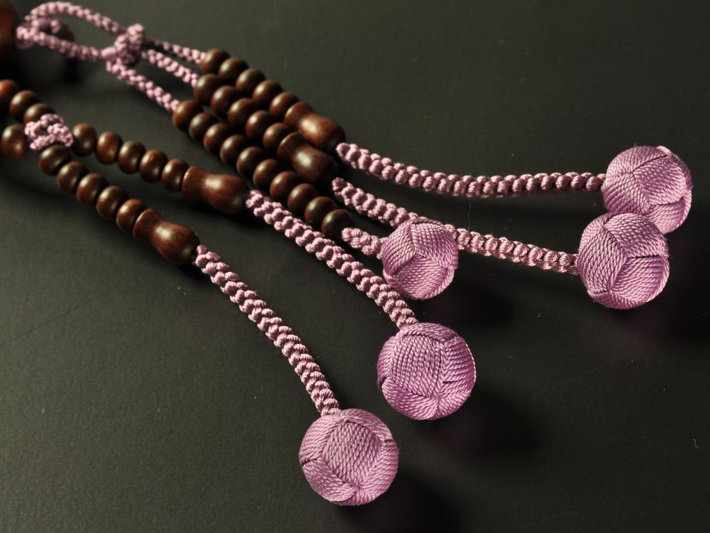 数珠の紐は、簡単に切れるようになっておりませんが、大切にお使いいただけますように、お願いします。詳しくは、 数珠・念珠とはのページへ