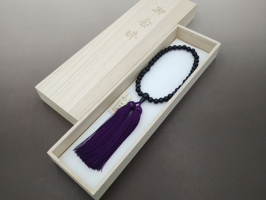 紫金石(7mm) 正絹頭付き房(紫色) 女性用略式数珠
