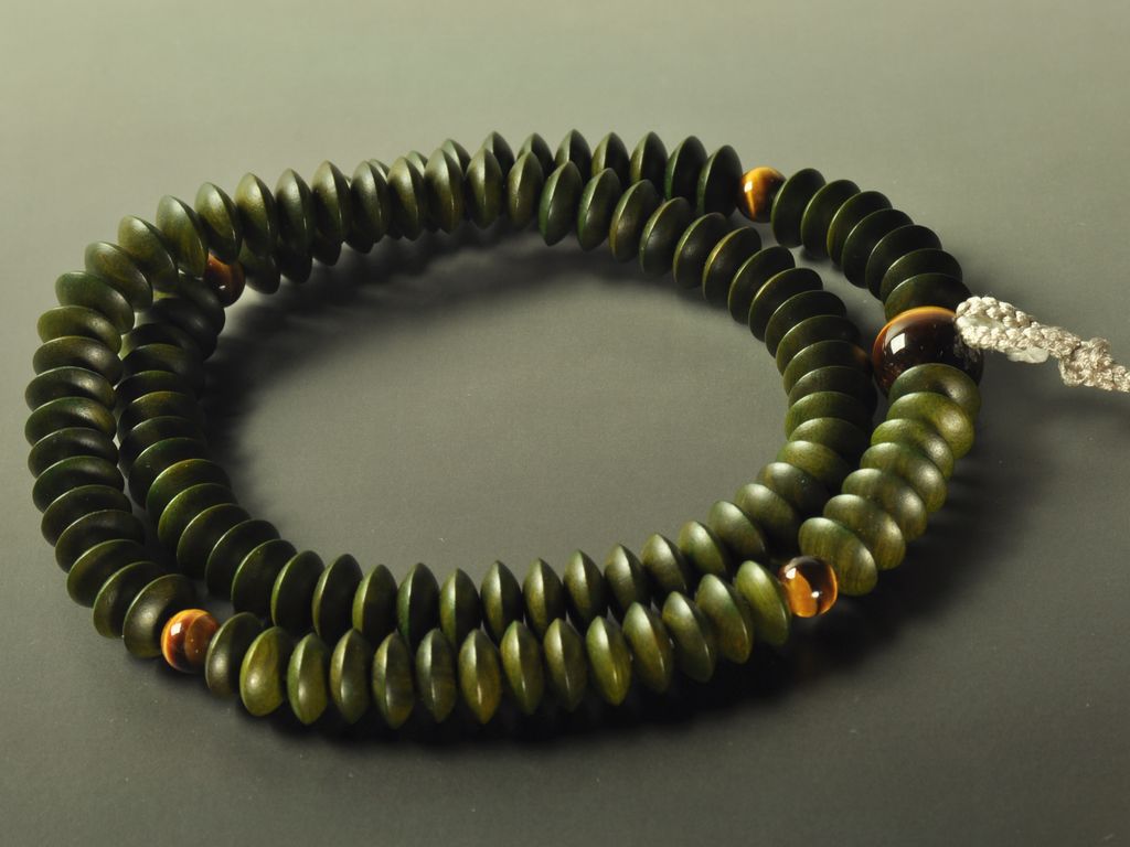 別名「生命の木」と言われ、その由来は緑壇の樹液は万病に効くと信じられていたからです。ワシントン条約で規制されているほど希少性が高まっている高級木材です。非常に重く、丈夫です。独特な緑色も時間と共に濃くなる傾向にあります。アマゾンの地域では香木としても利用されているようです。お念珠の玉としても男女を問わず上品な仕上がりになる人気の素材です。
