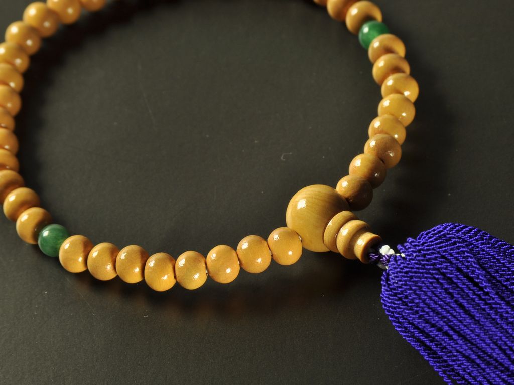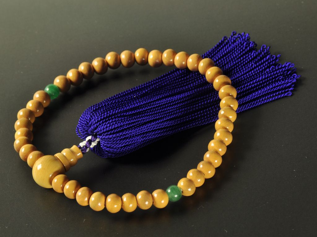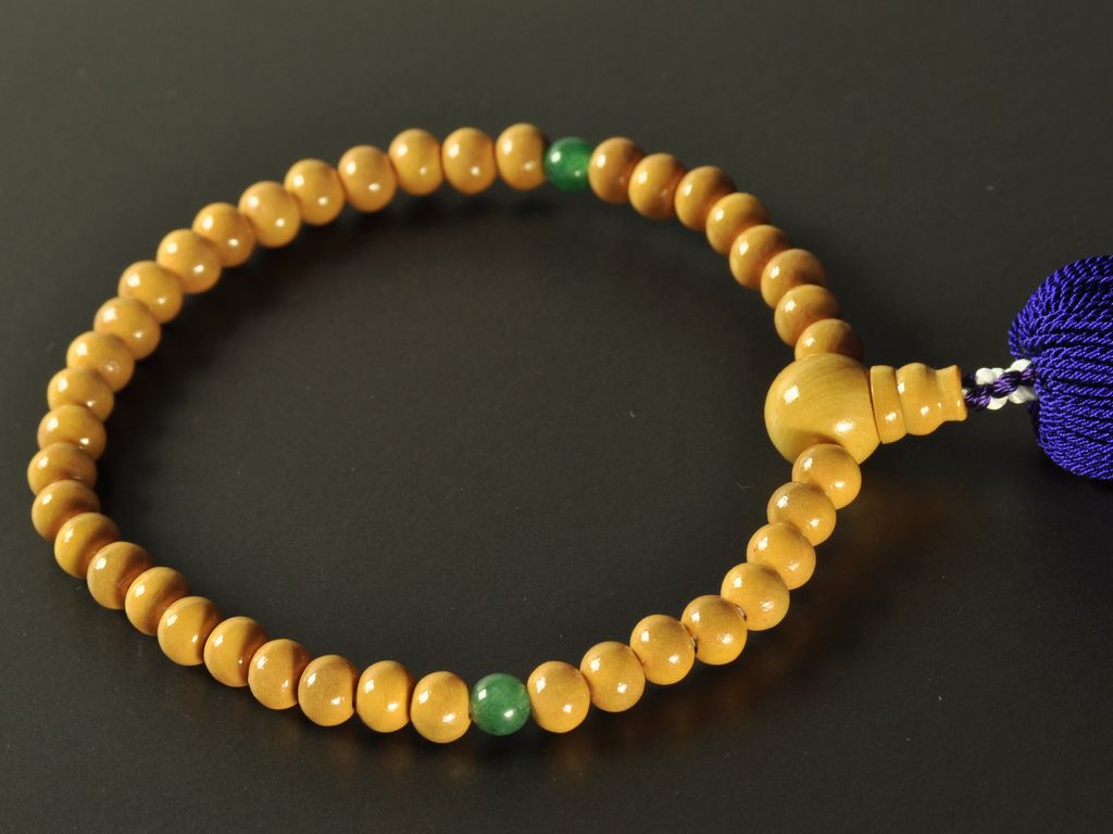 ツゲと読みます。関東以西に自生する木で、重厚で成長に時間がかかります。数珠の玉としても適しており、古くから将棋の駒やソロバンの玉、印鑑にも用いられてきました。色合いも明るめで天然石の玉とも相性が良いです。