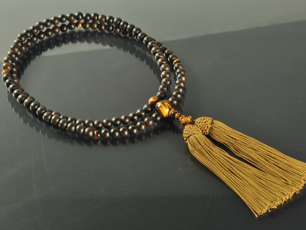 縞黒檀 虎眼石 正絹頭付き房(浜梨色) 臨済宗(禅宗) 男性用本式数珠