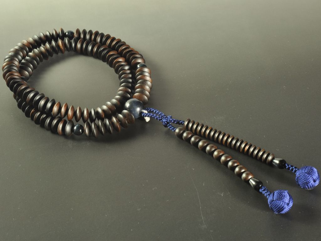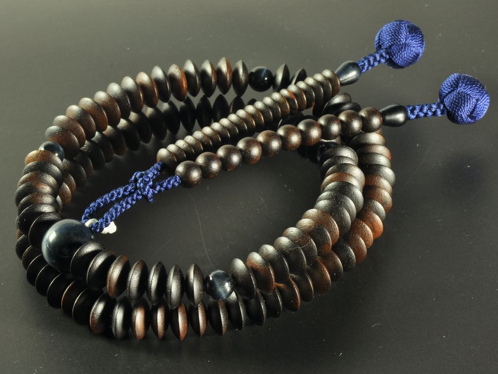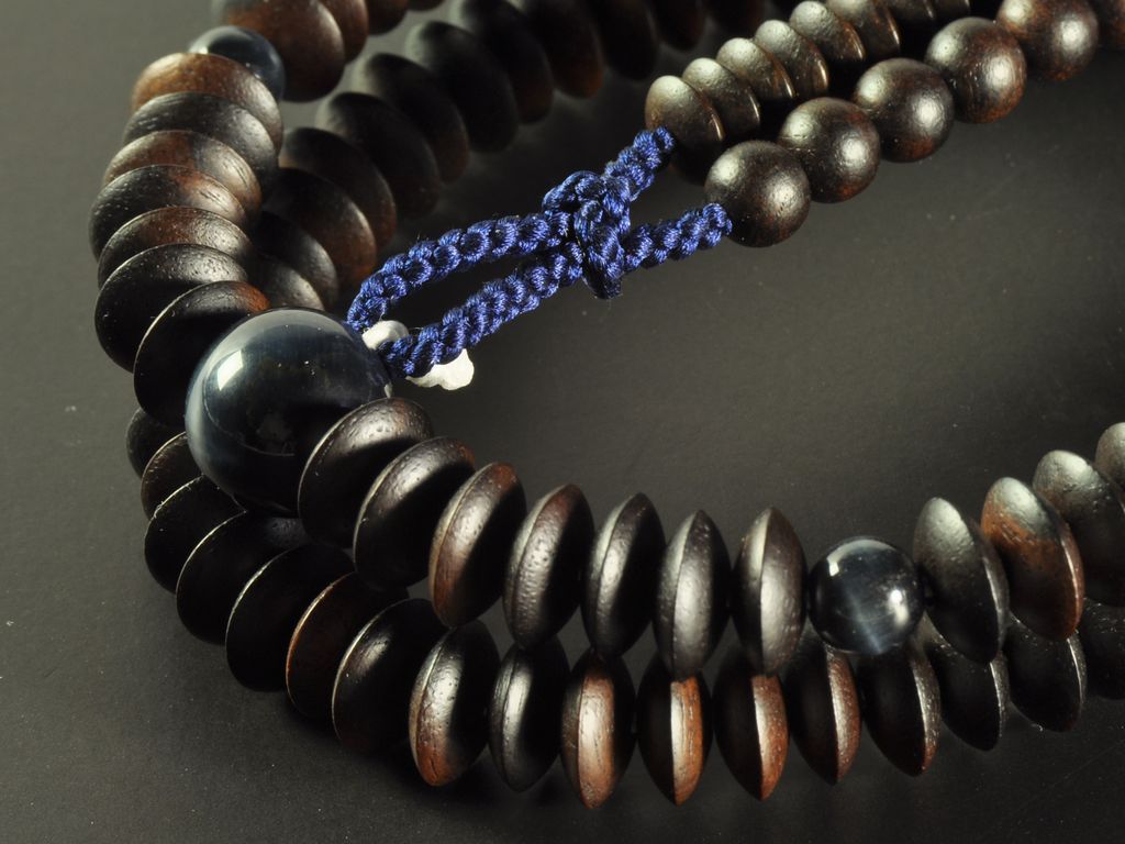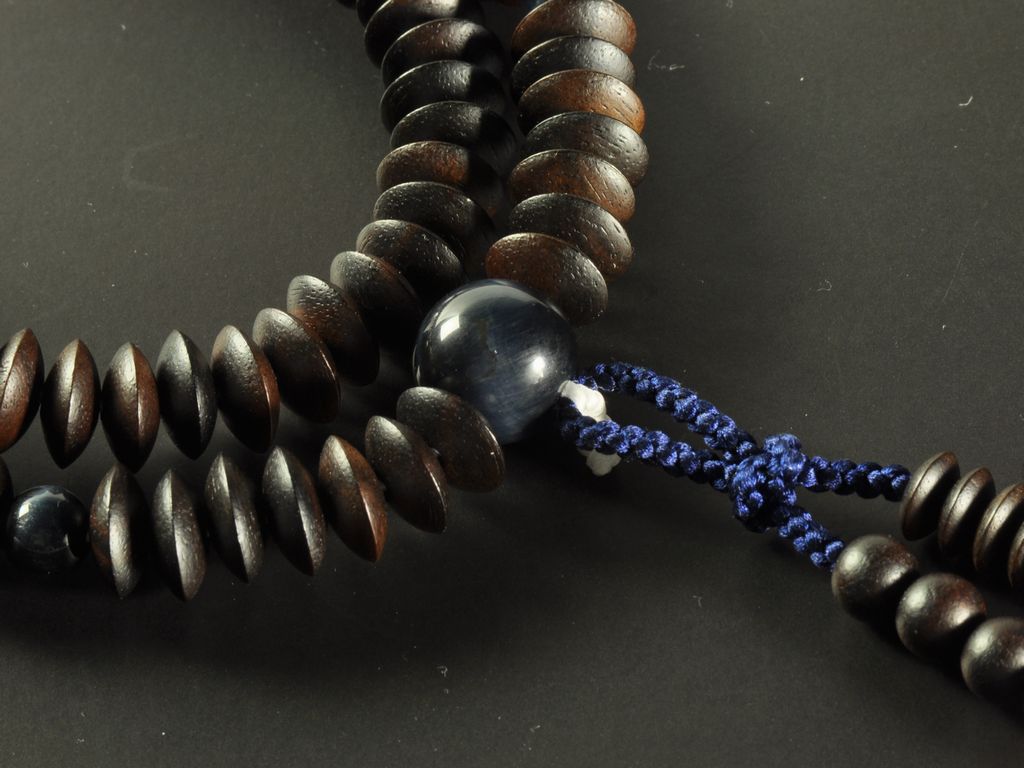 縞黒檀 青虎眼石 梵天カガリ房(濃紺) 天台宗 男性用本式数珠
