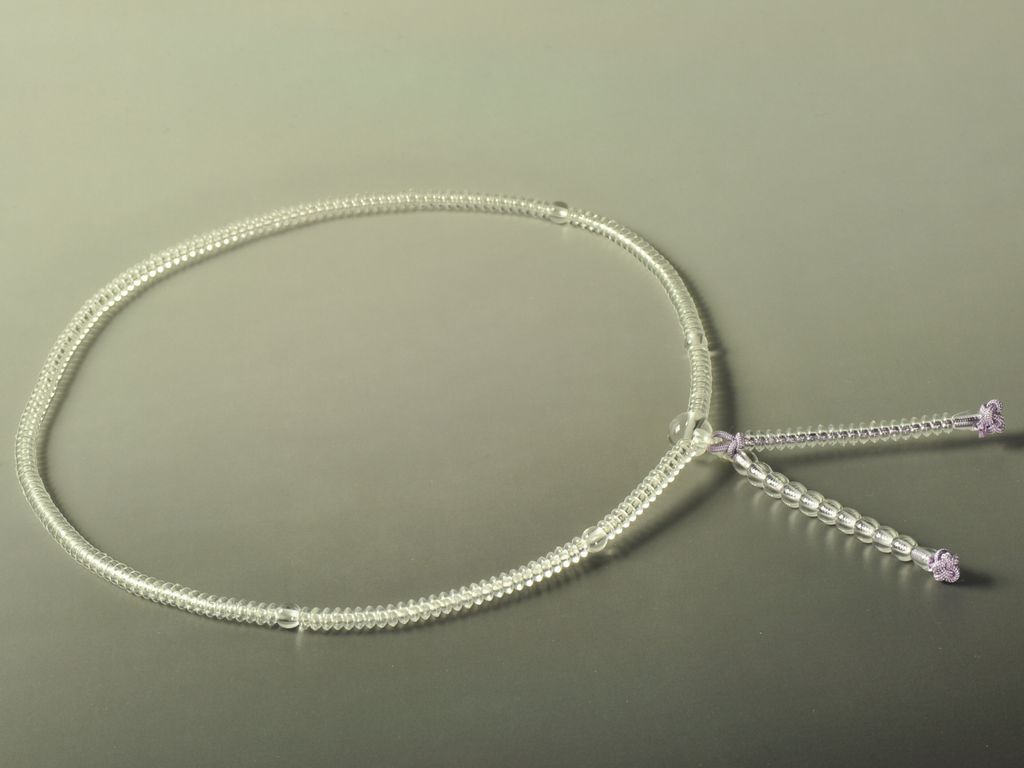 親玉に、高級感のある透明なアクリル玉を使用し、主玉には透明なプラスチック製の平玉を使用していますので、軽くてお子様でも扱いやすいお数珠に仕上がっています。