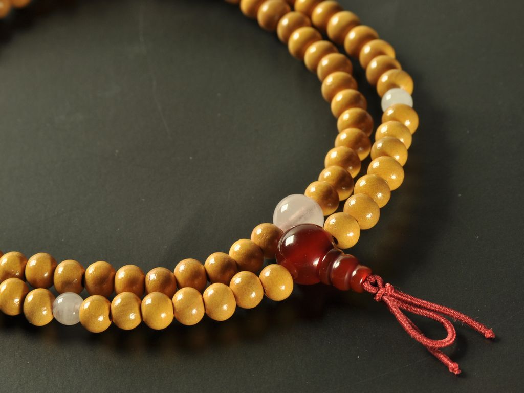 3重巻き ねんじゅブレスレット つげ(108玉) 瑪瑙・ローズクォーツ